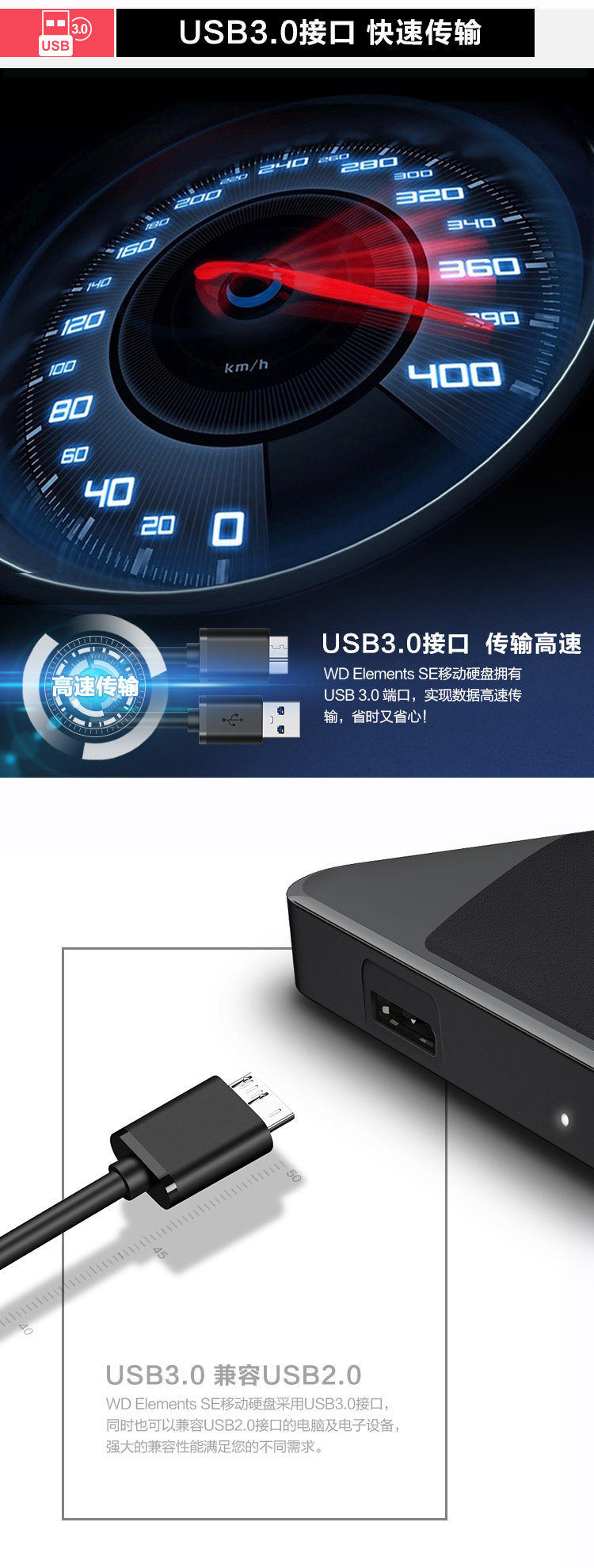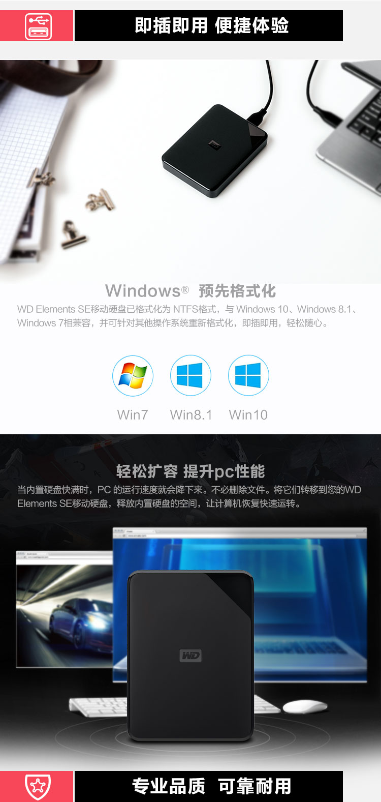 西部數(shù)據(jù)/WD 5TB 移動硬盤 USB3.0 Elements SE 新元素系列2.5英寸 機械硬盤 高速傳輸 輕薄便攜 存儲備份