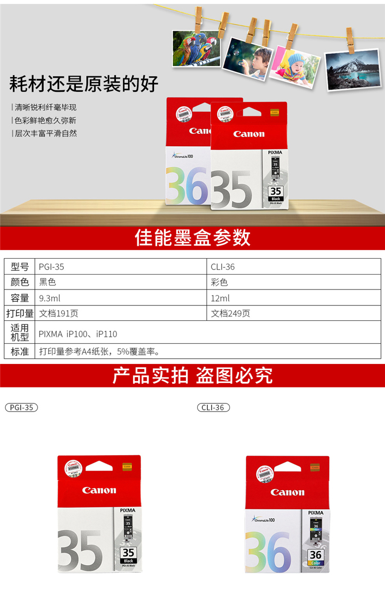 佳能 PGI-35 噴墨盒 原裝黑色墨盒適用PIXMA iP100 iP110