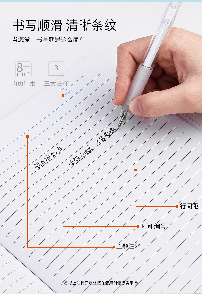 得力 3226 薄本冊(cè) 無線膠裝軟抄本 筆記本子 記事本 B5 辦公文具 1本40頁