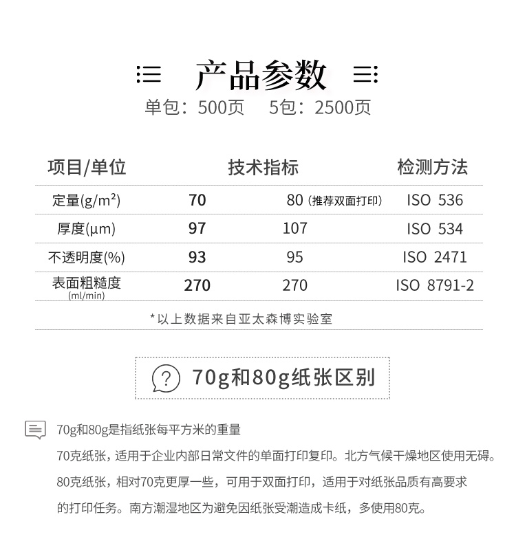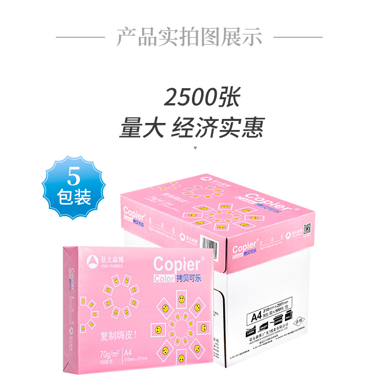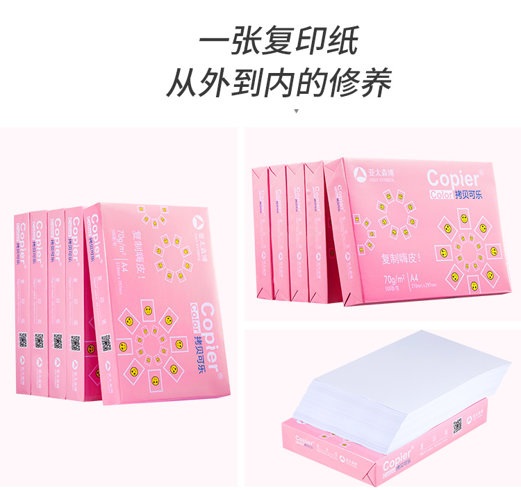 亞太森博(Asia Symbol)拷貝可樂(lè)70g A4復(fù)印紙 打印紙 網(wǎng)銷(xiāo)爆款 500張/包 5包/箱(2500張)(百旺系列)