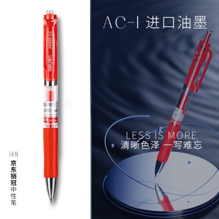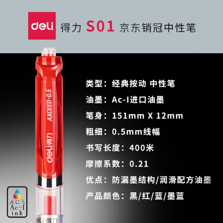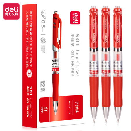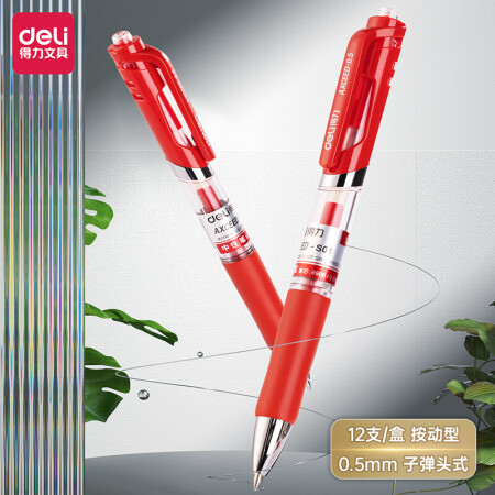 得力 S01 書寫用筆類用具 中性筆簽字筆 0.5mm子彈頭經(jīng)典辦公按動(dòng)筆水筆 紅色 12支/盒
