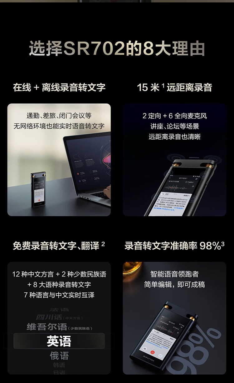 科大訊飛 SR702 語(yǔ)音輸入設(shè)備 多語(yǔ)言實(shí)時(shí)錄音轉(zhuǎn)寫智能離線翻譯機(jī)