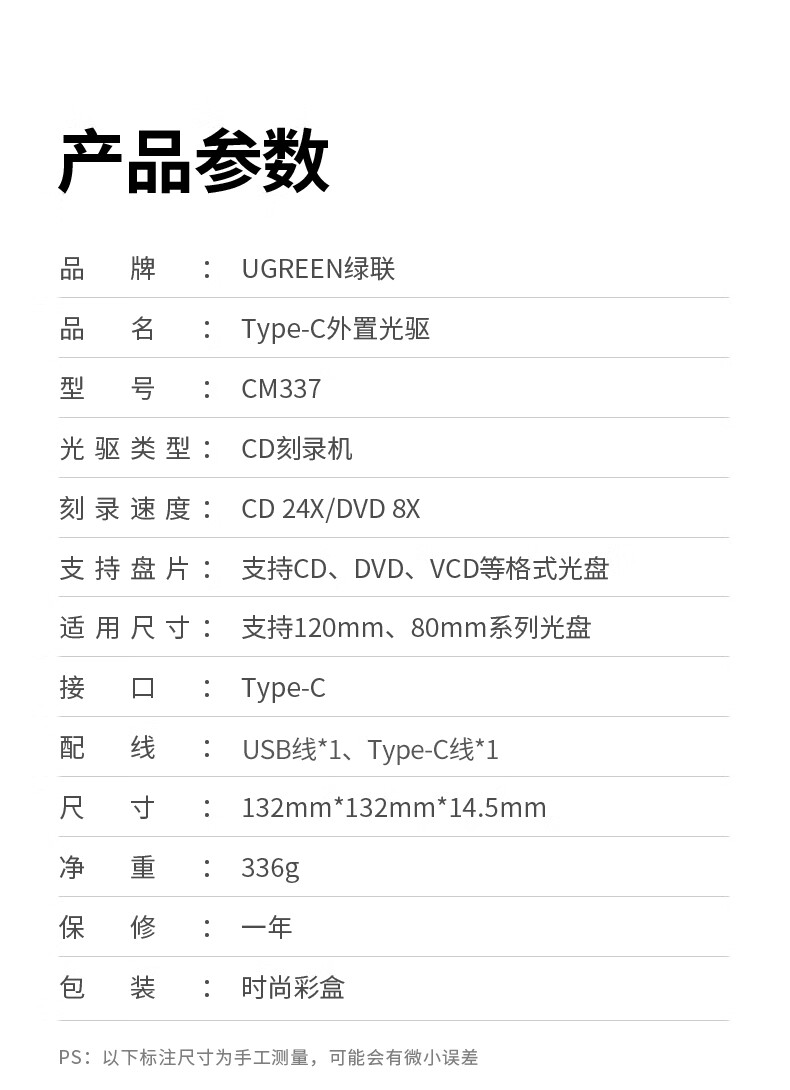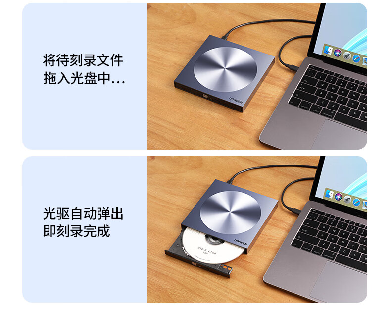綠聯(lián) 0021 光驅(qū) 8倍速外置移動(dòng)光驅(qū) 鋁合金材質(zhì)DVD光盤刻錄機(jī) Type-C/USB雙接口 適用Mac/Win系統(tǒng)筆記本電腦臺式機(jī)