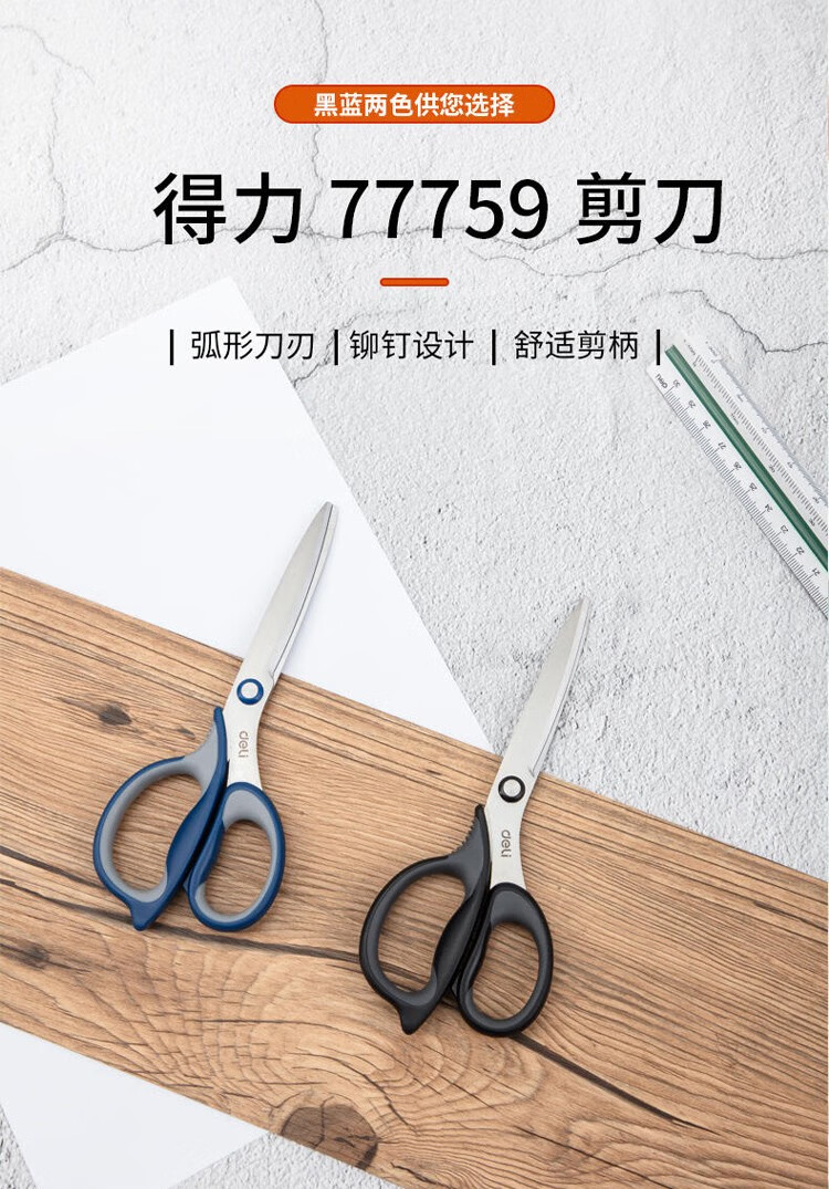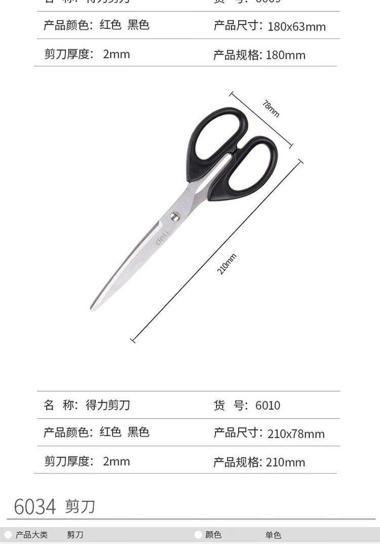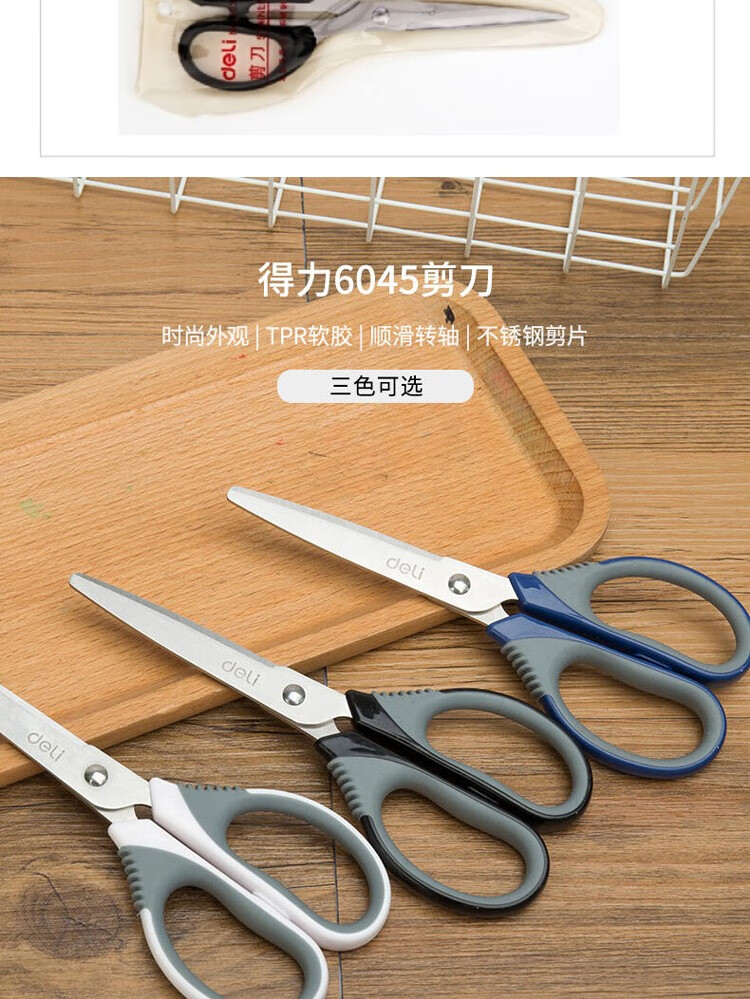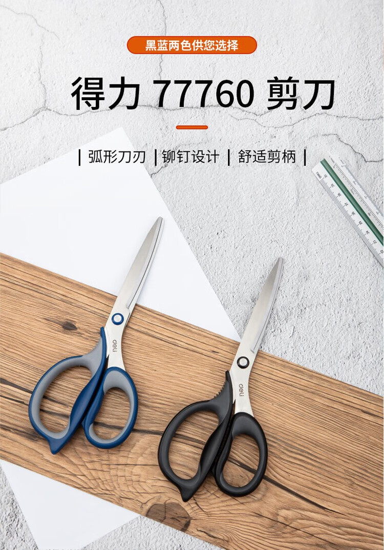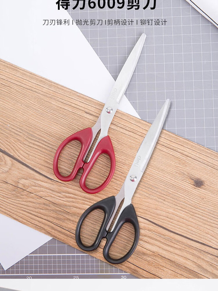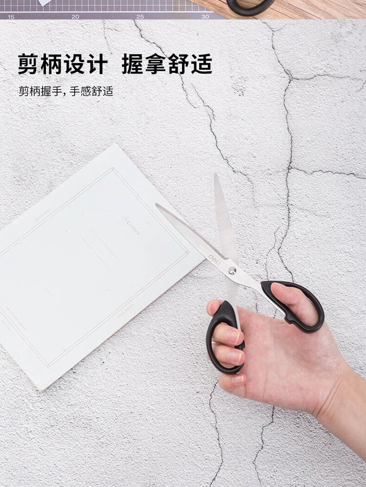 得力 6009 剪刀 不銹鋼剪刀辦公家用生活剪子美工手工剪刀鋒利耐用多功能剪刀 辦公用品 180mm【中號(hào)】黑色 6009