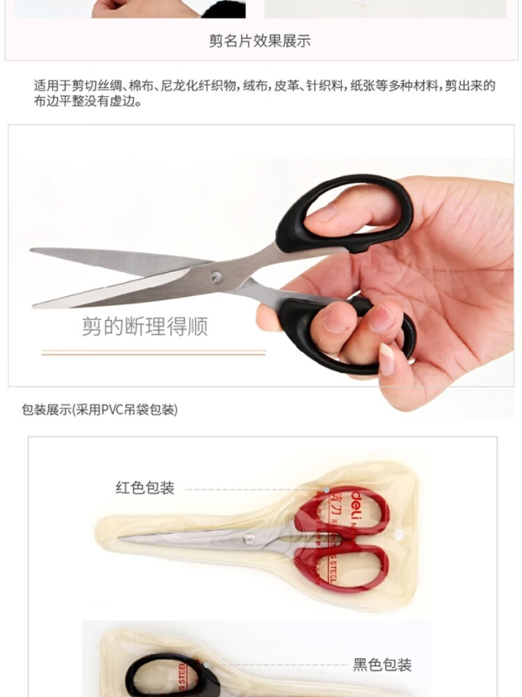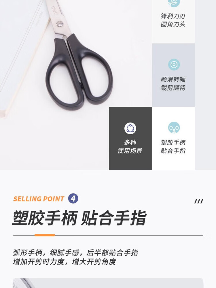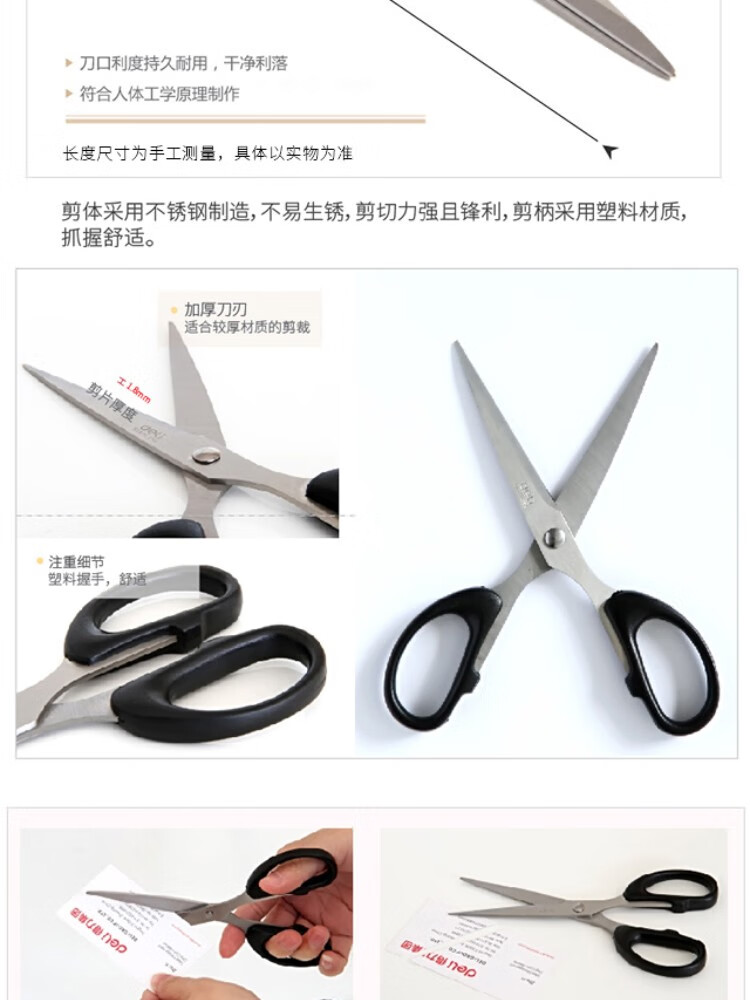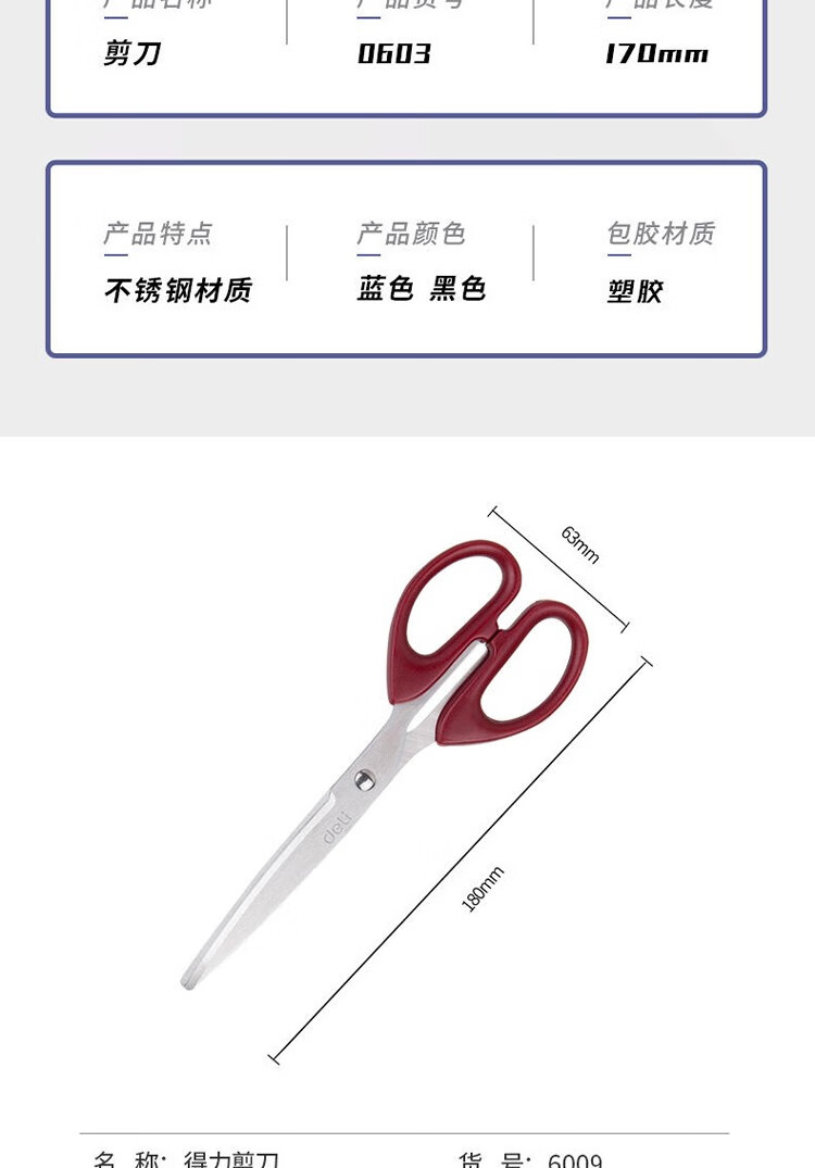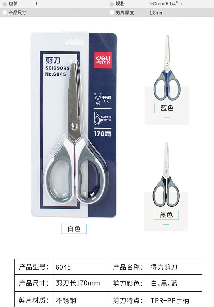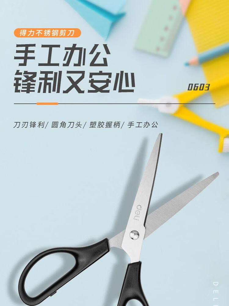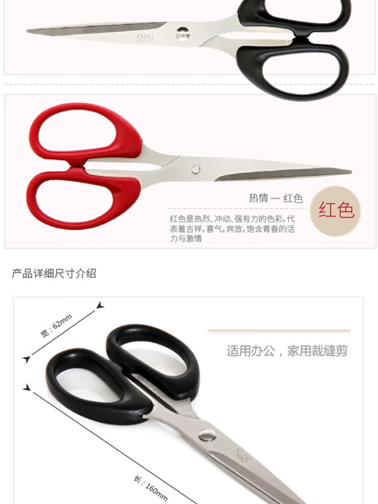 得力 6009 剪刀 不銹鋼剪刀辦公家用生活剪子美工手工剪刀鋒利耐用多功能剪刀 辦公用品 180mm【中號(hào)】黑色 6009