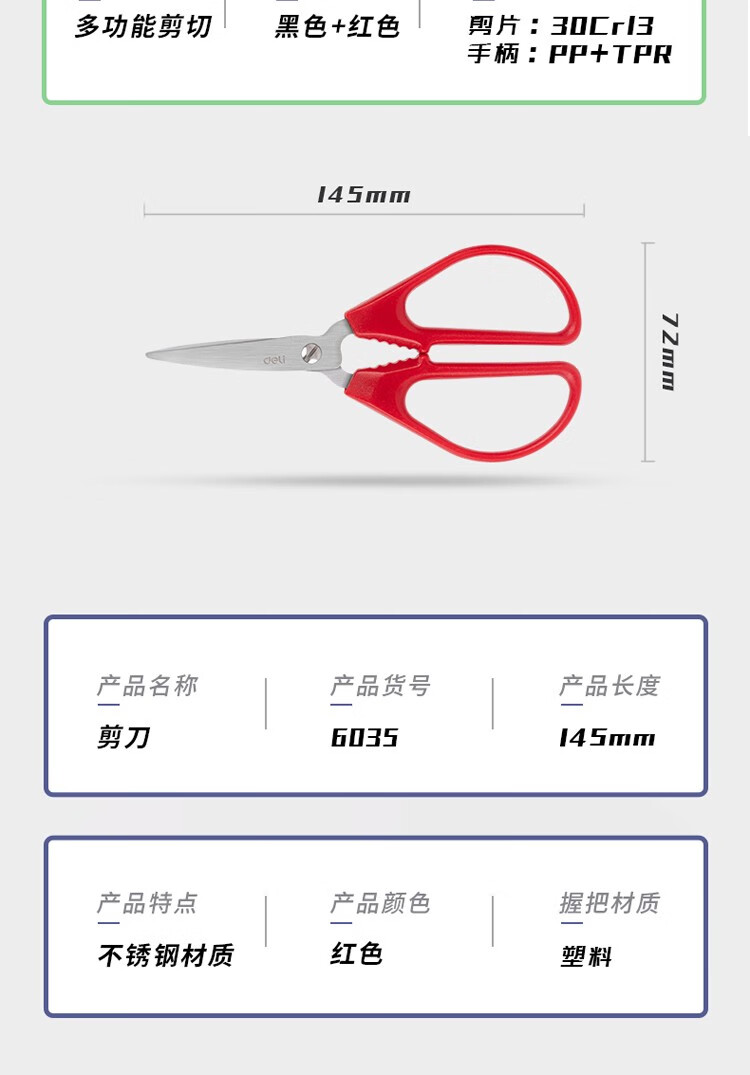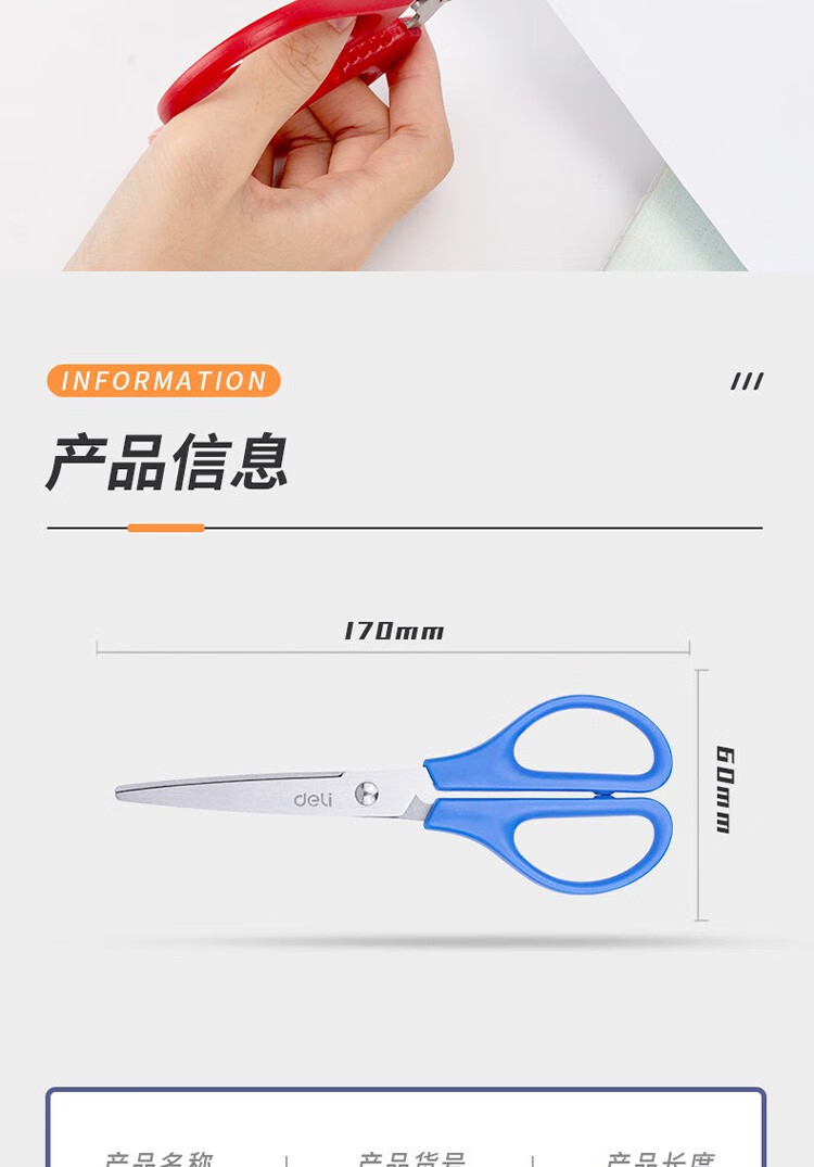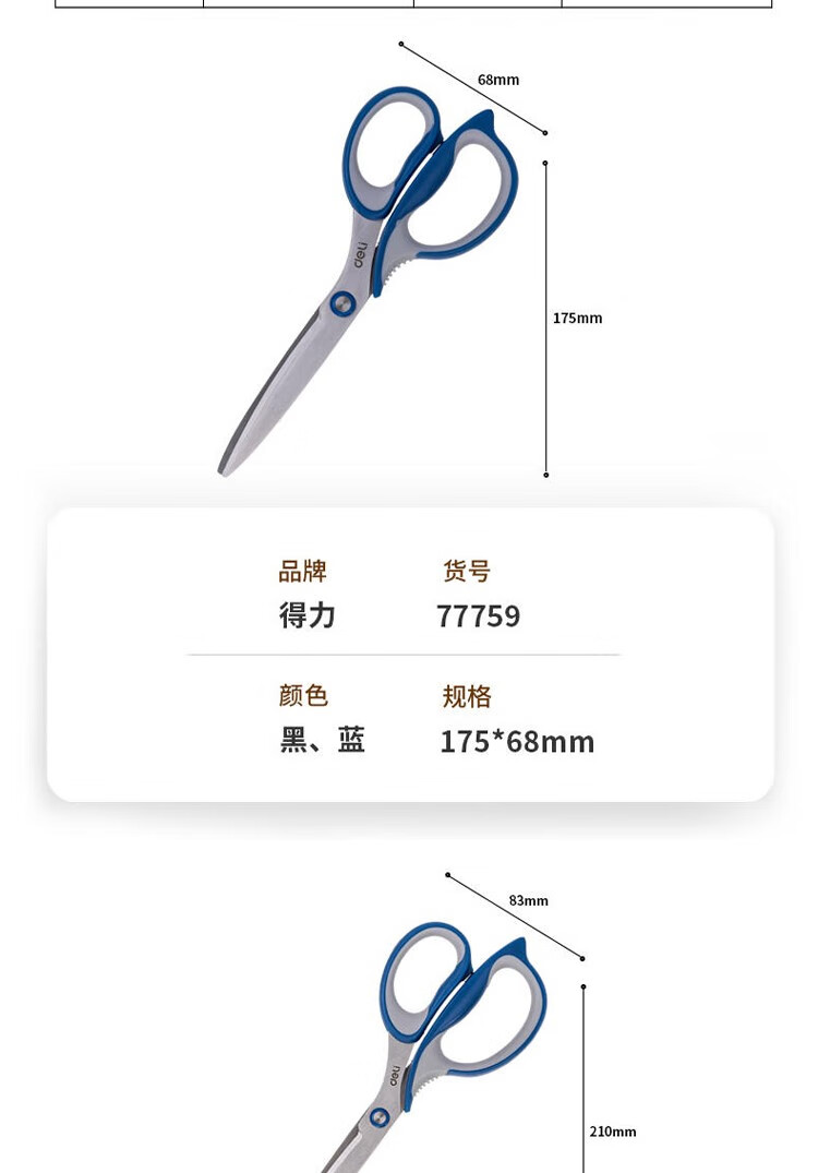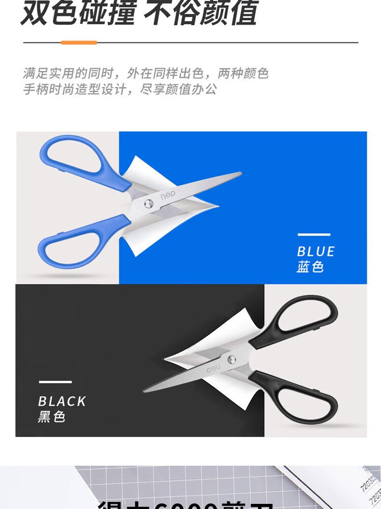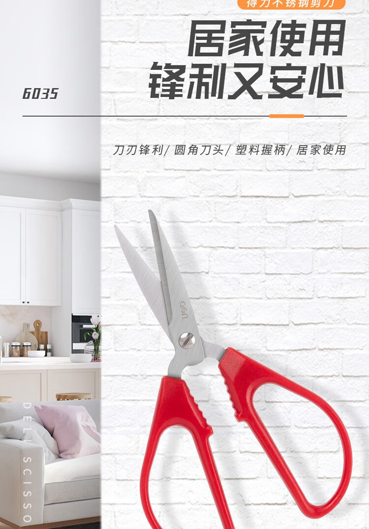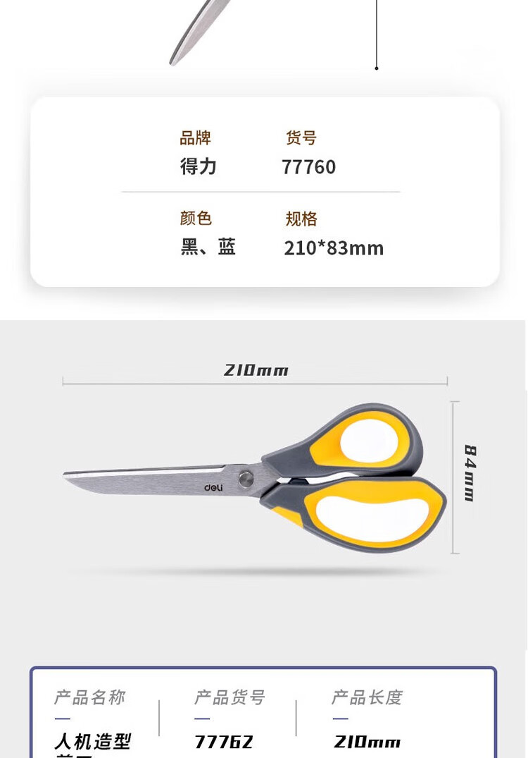 得力 6009 剪刀 不銹鋼剪刀辦公家用生活剪子美工手工剪刀鋒利耐用多功能剪刀 辦公用品 180mm【中號(hào)】黑色 6009