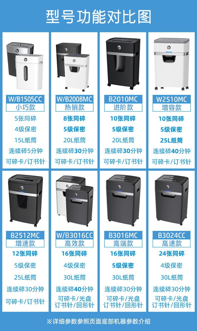 惠普B1505CC 碎紙機(jī) 保密辦公碎紙機(jī) (可連續(xù)碎紙、可碎卡、訂書(shū)針) B1505CC 4級(jí)保密單次5張15L連續(xù)5分鐘