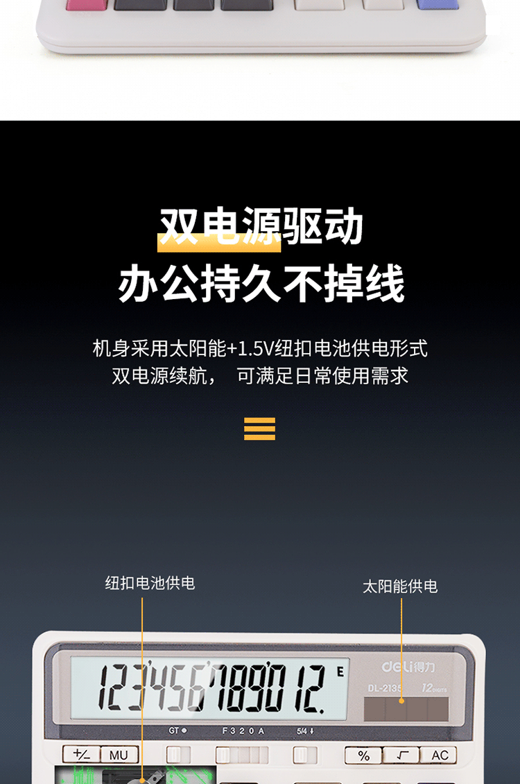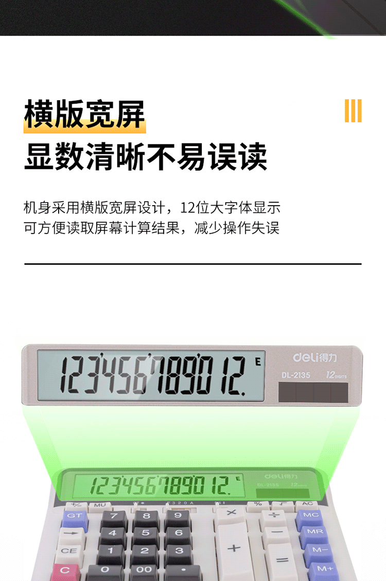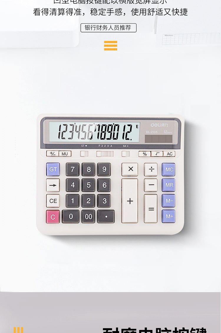 得力 2135 電子計(jì)算器 雙電源電腦按鍵計(jì)算器 12位大屏橫式計(jì)算機(jī) 金融財(cái)務(wù)/銀行計(jì)算 辦公文具用品 白色2135