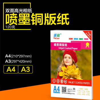 雅嵐/YaLan 120g 噴墨/相片紙/卡紙噴墨銅版紙120克a3雙面高光防水相紙a4照片紙 A4|120g|50張/包 噴墨雙銅