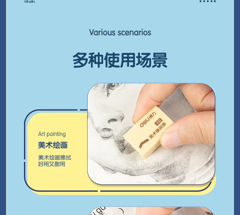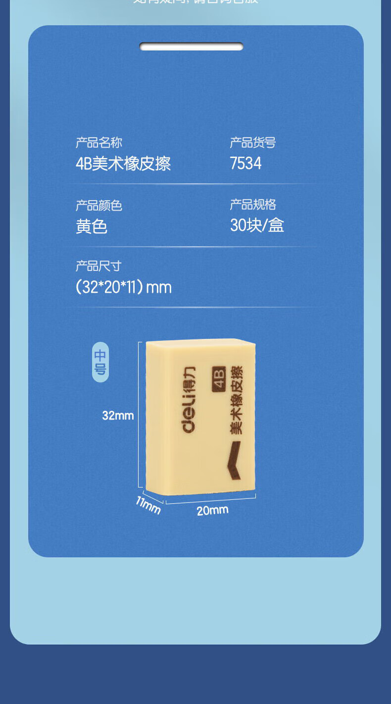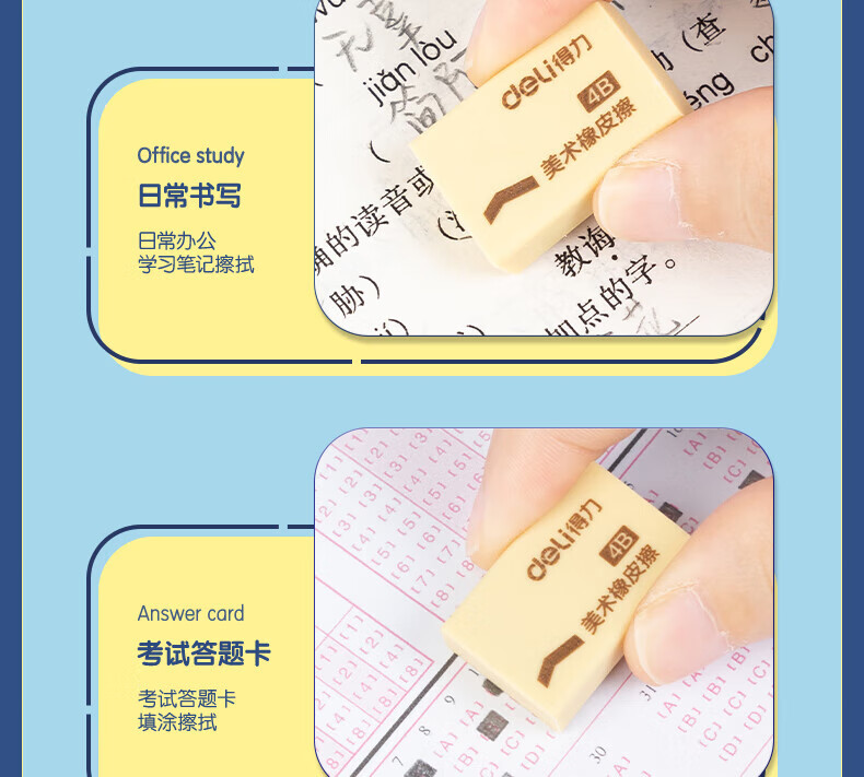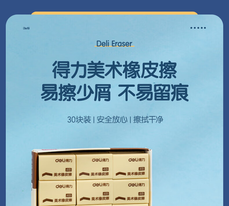 得力7534 學(xué)生橡皮擦 繪畫4B黃色美術(shù)繪圖考試橡皮 學(xué)生文具學(xué)習(xí)用品 30塊分享裝開(kāi)學(xué)禮物 7534