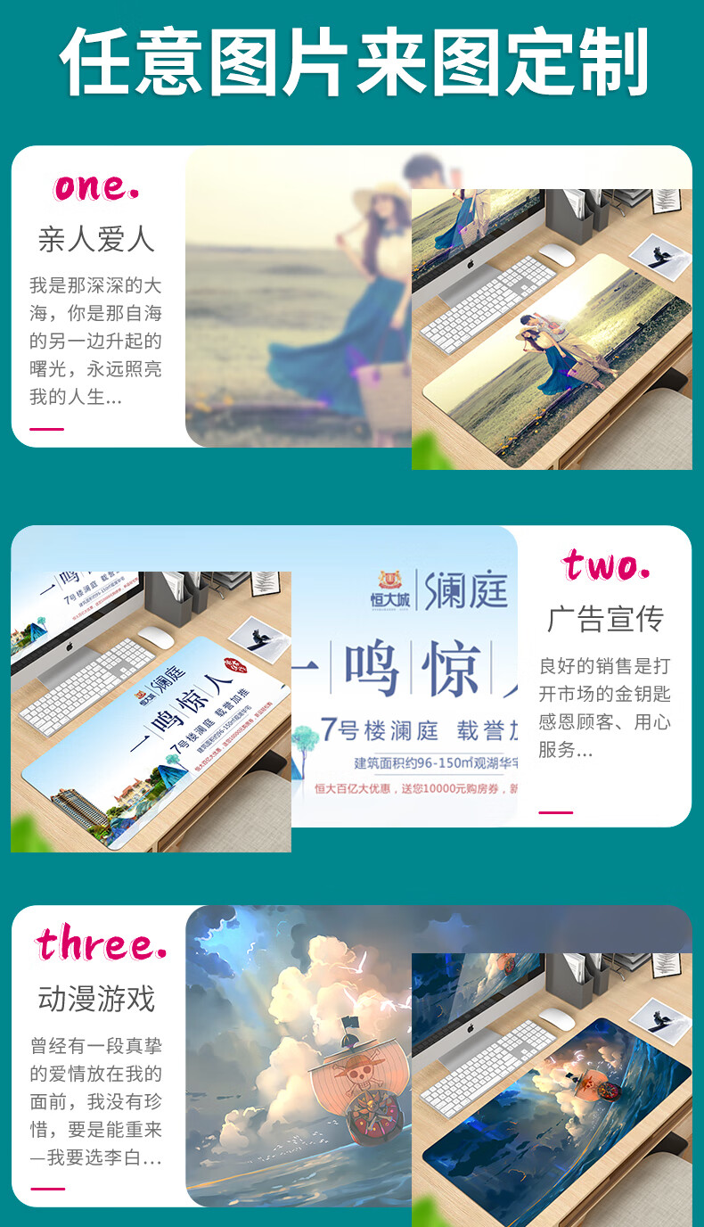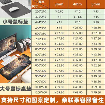 沁宣 鼠標墊定制圖案尺寸來圖定做diy超大號游戲動漫二次元創(chuàng)意廣告圖訂制加厚鎖邊中號小號桌墊鍵盤墊子 加厚款5mm(來圖定制 ) 325*245mm