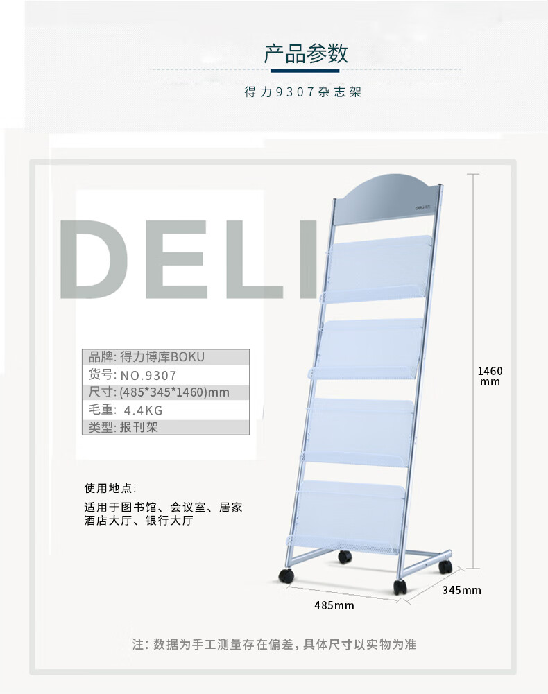 得力/deli 1.45M 置物架 金屬 帶滾輪