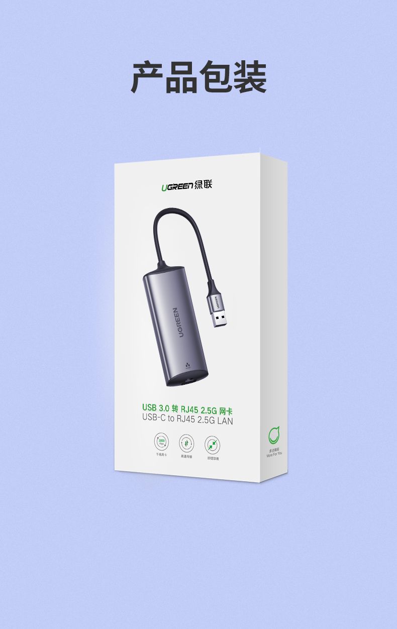 綠聯(lián) RJ45 網(wǎng)絡(luò)連接設(shè)備 2.5G適用蘋果MAC筆記本電腦USB轉(zhuǎn)RJ45網(wǎng)口轉(zhuǎn)換器網(wǎng)線接口轉(zhuǎn)接頭 2.5G外置網(wǎng)卡