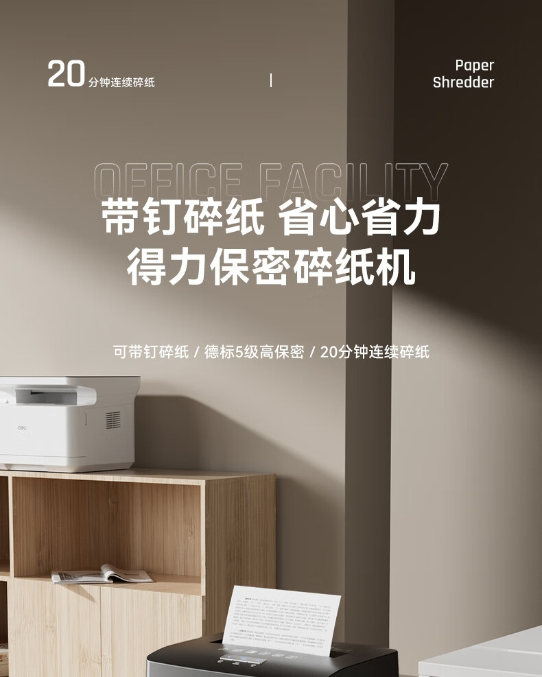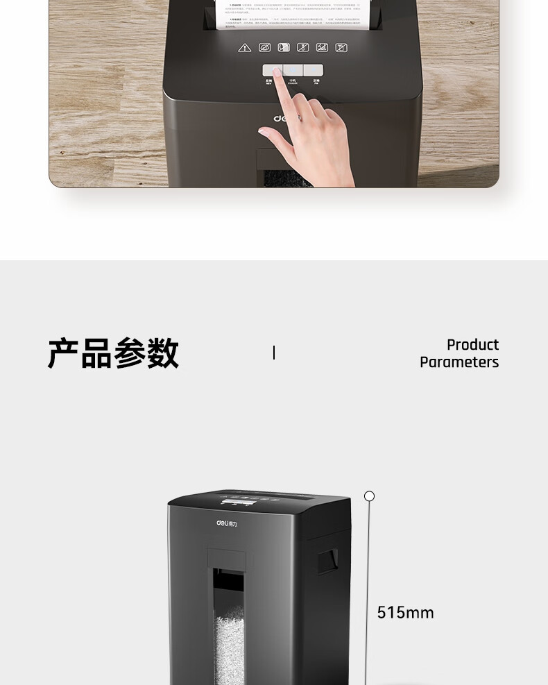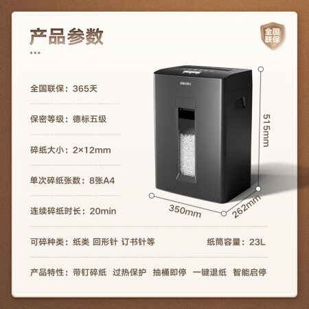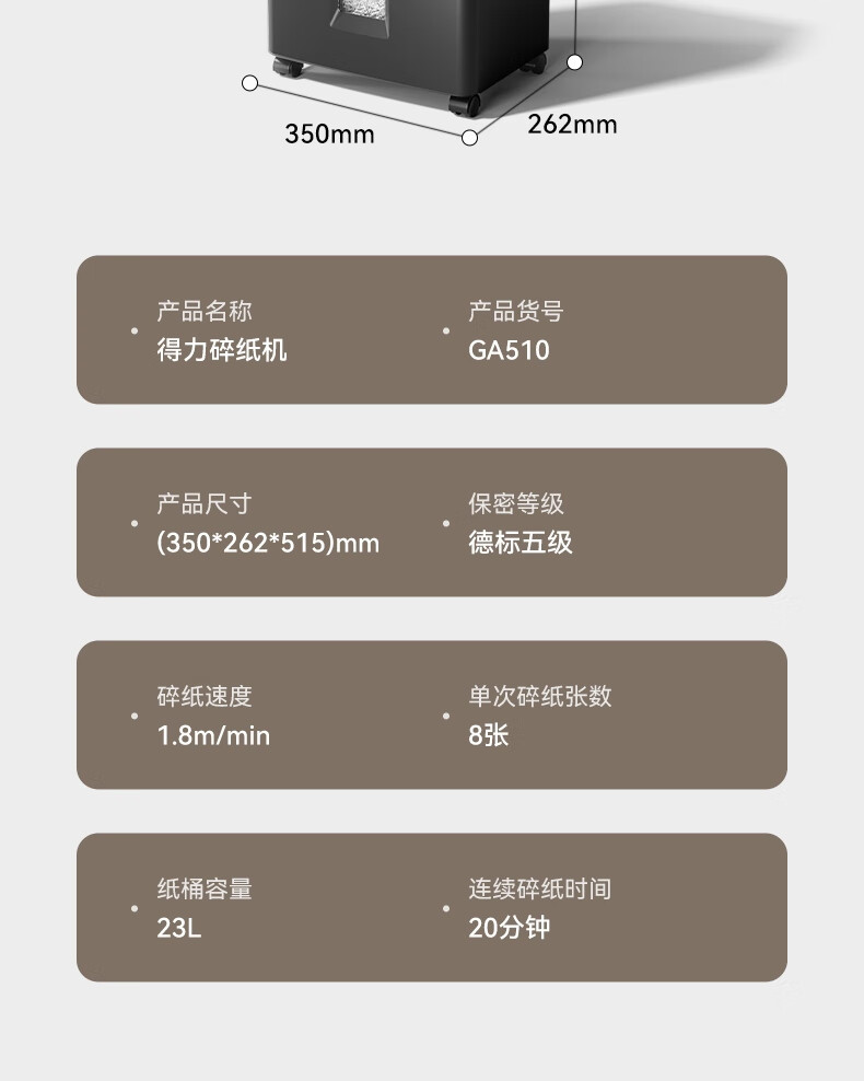 得力 deli 5級(jí)高保密商用辦公碎紙機(jī) 文件粉碎機(jī)GA510( 連續(xù)碎紙20分鐘 單次8張 23L)