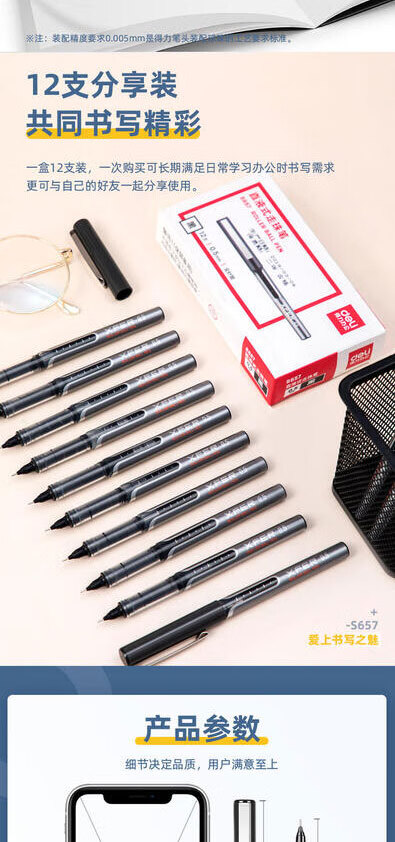 得力/deli S567 書(shū)寫(xiě)用筆類(lèi)用具 直液式走珠 黑色