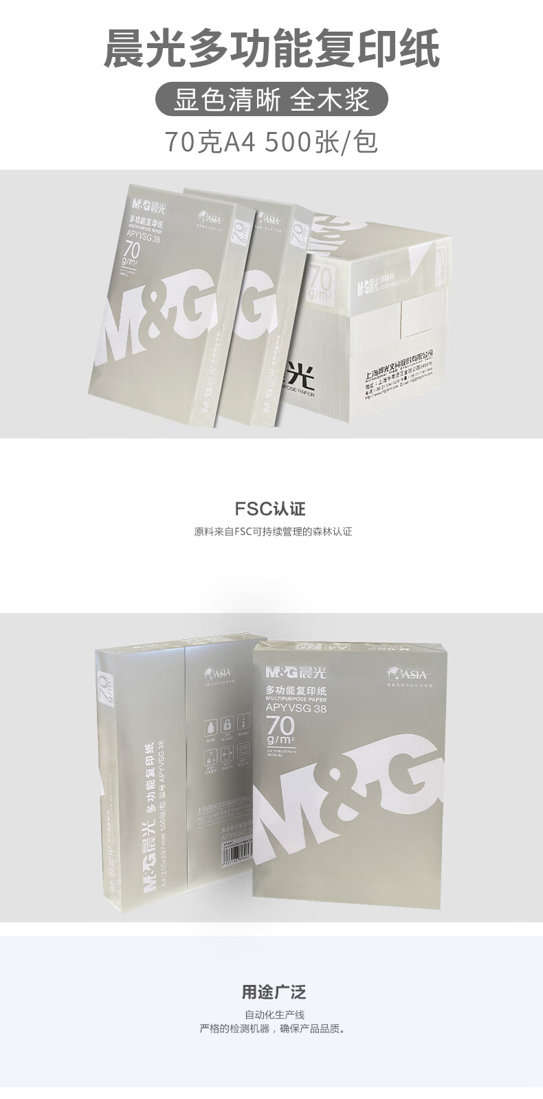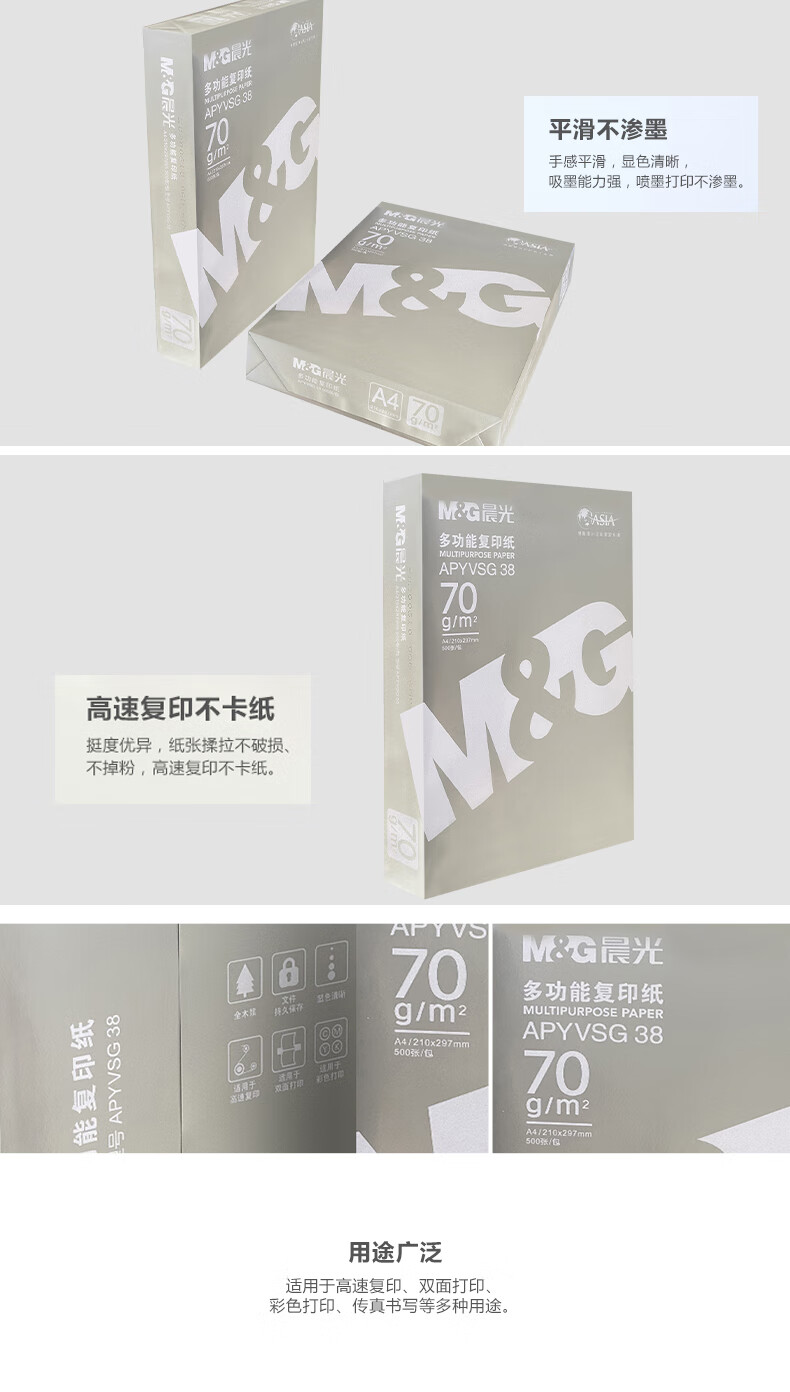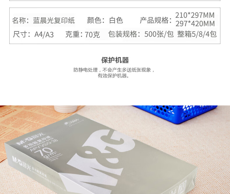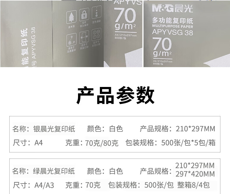 晨光 70g 復(fù)印紙 銀 綠藍 紅A4紙打印紙復(fù)印紙70克500張80g雙面辦晨 藍晨光70克A4-8包