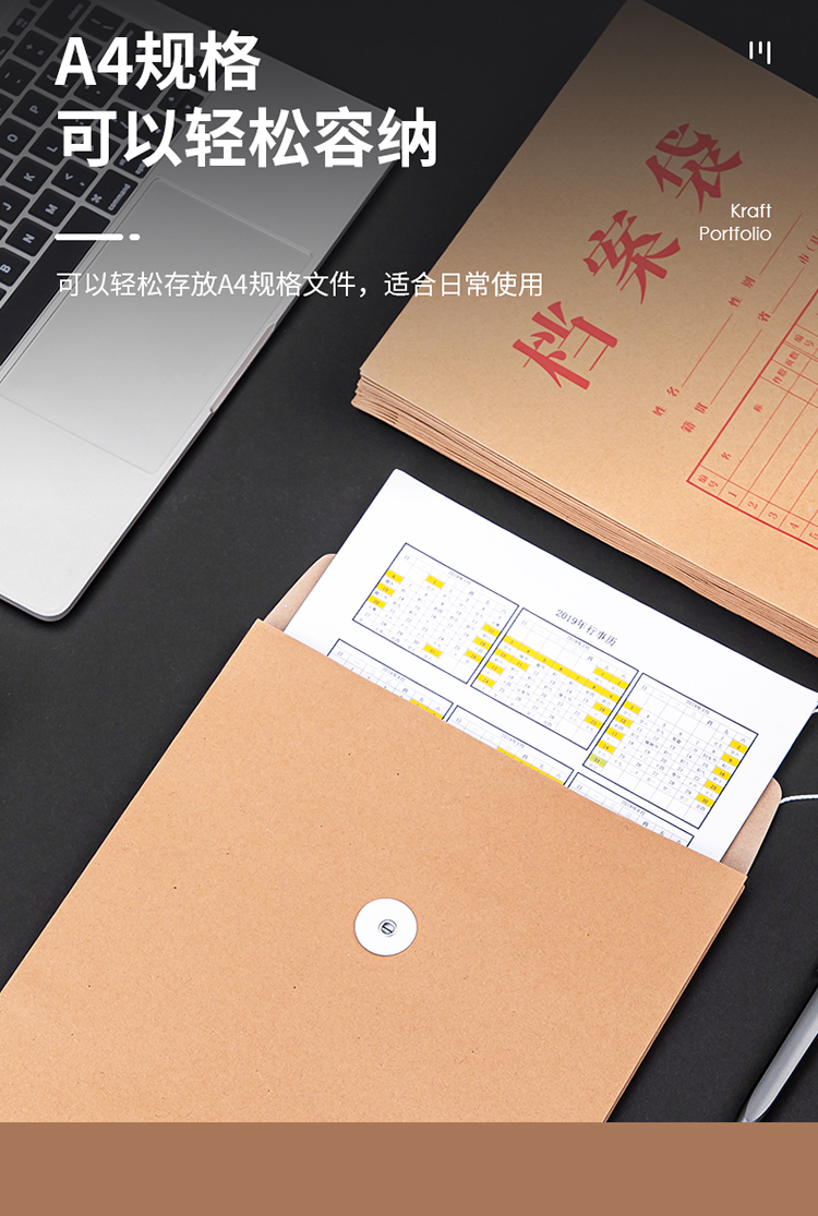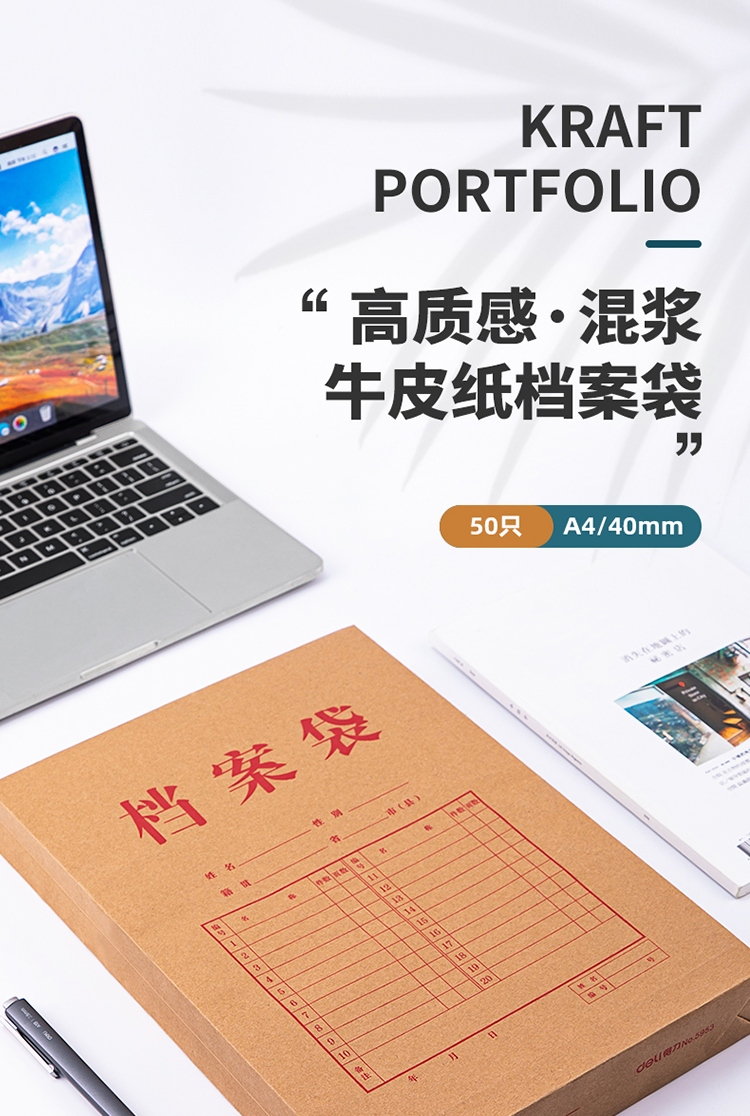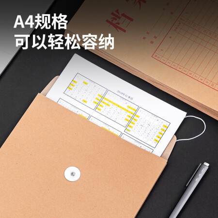 得力 deli 33474 文件袋 單只 A4混漿175g牛皮紙檔案袋 側(cè)寬4cm 標書合同文件資料袋