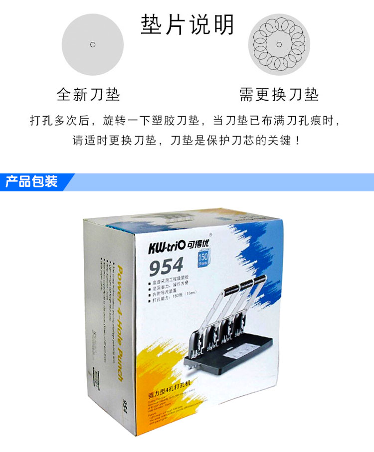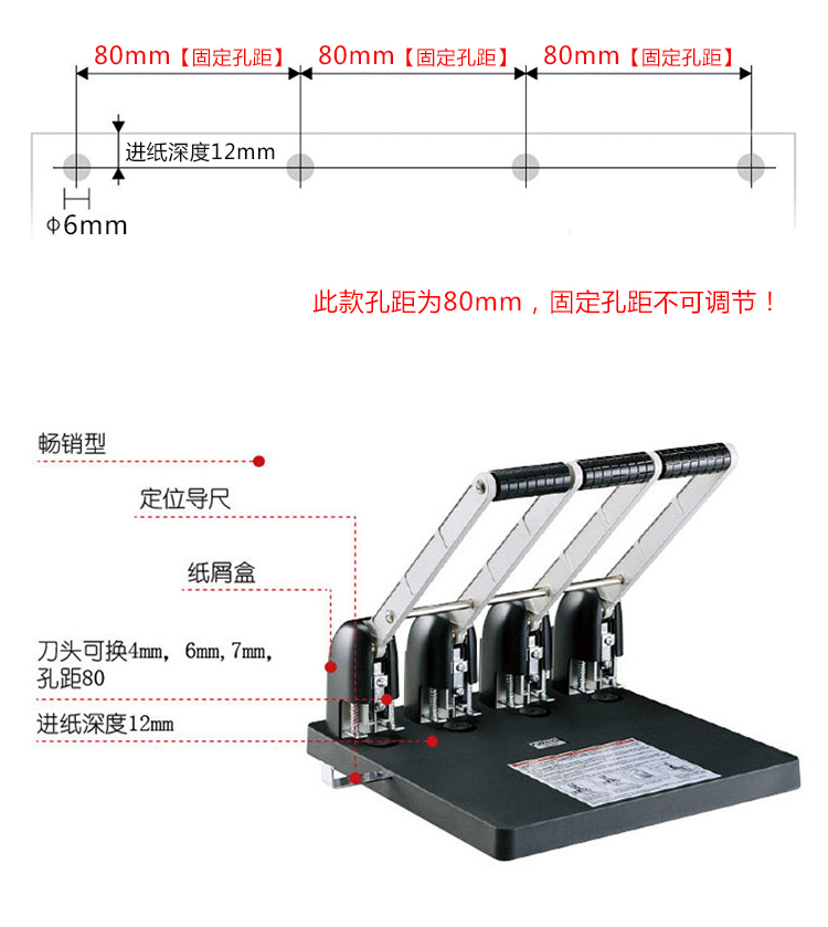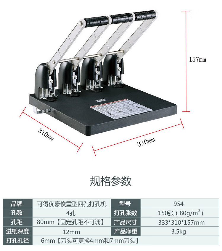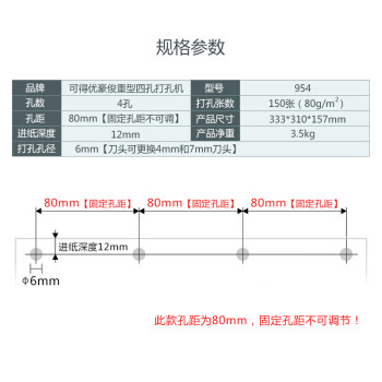 可得優(yōu) 954 裝訂機 四孔重型加厚打洞機打洞器孔徑6MM 固定孔距80MM不可調(diào) 954打孔機一臺