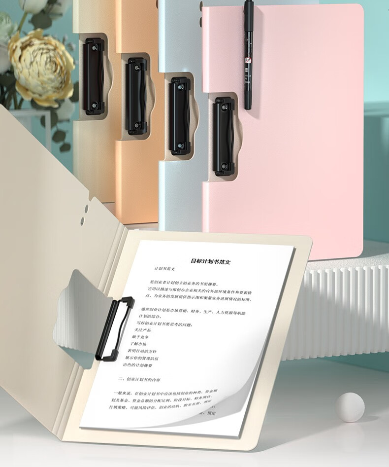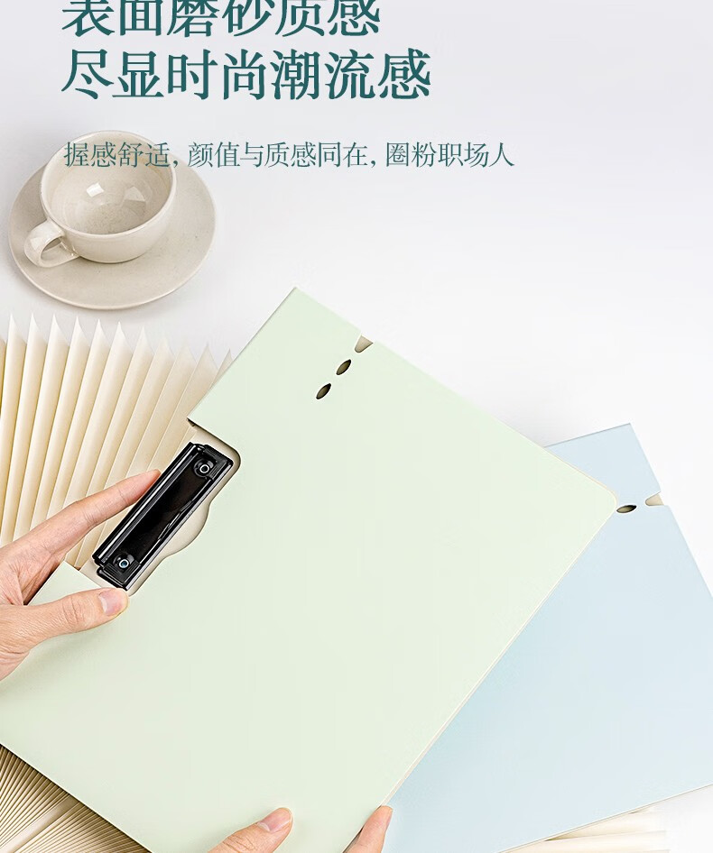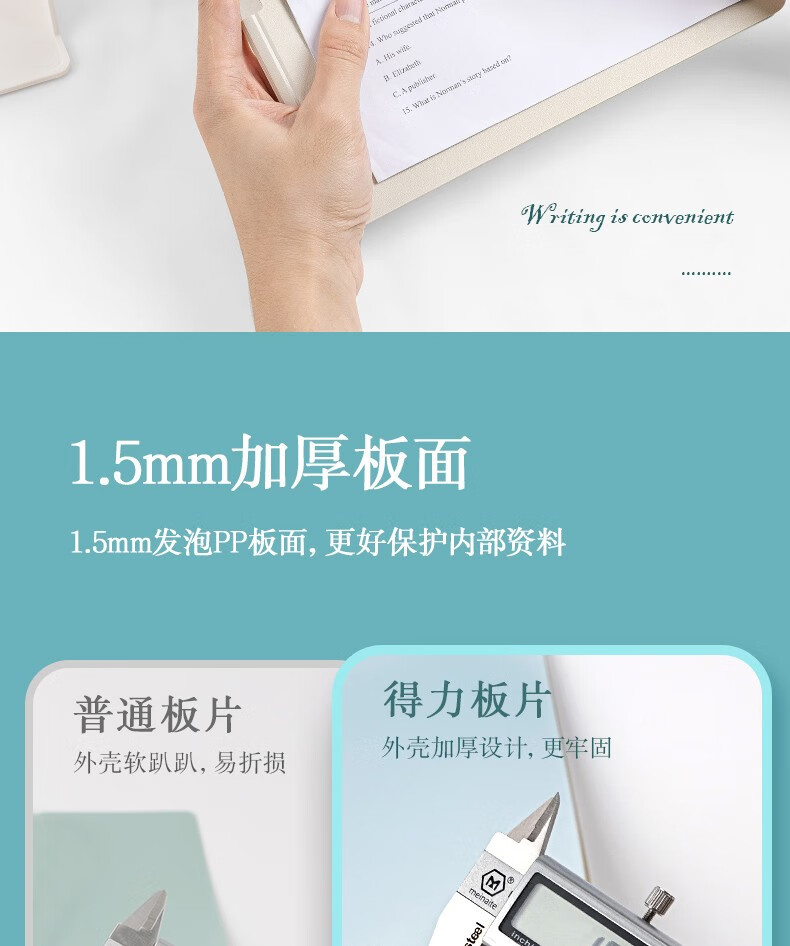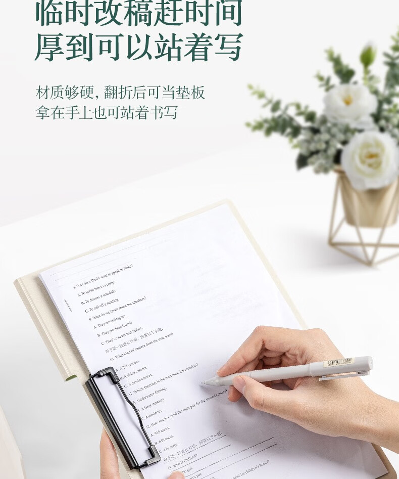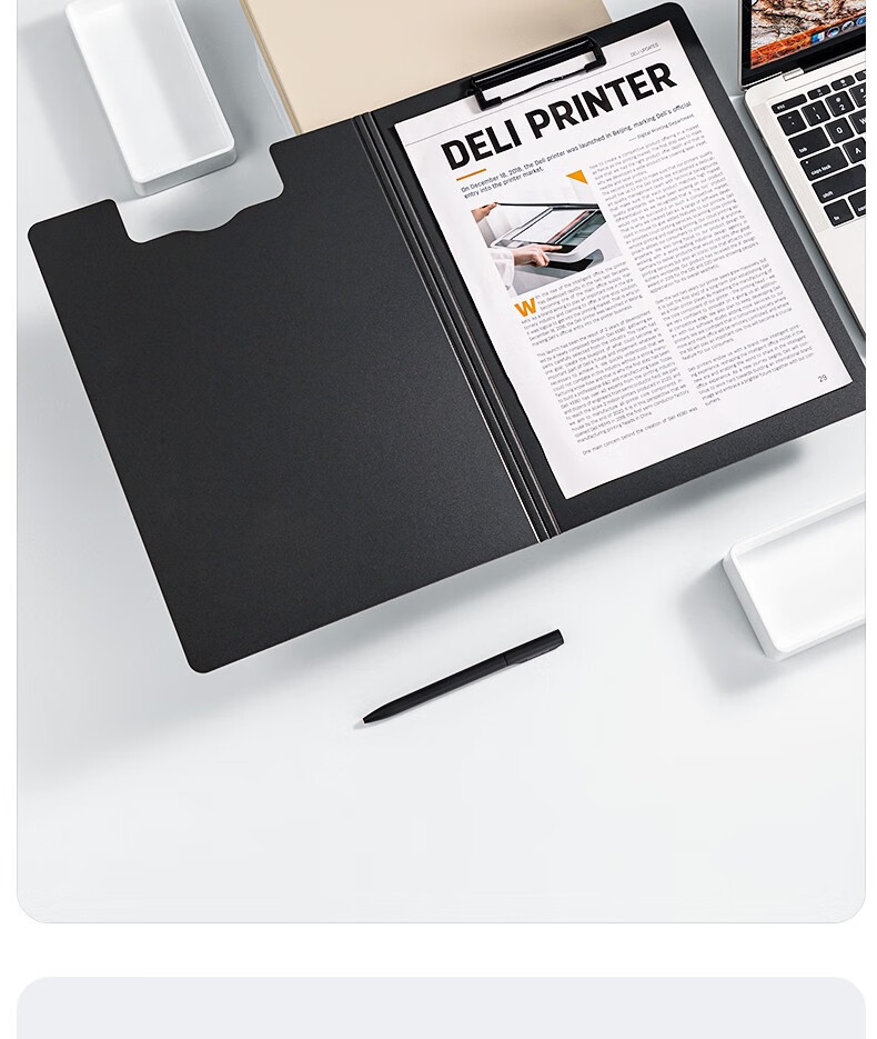 得力 5016 文件夾 A4折頁文件夾會議夾 詩朗誦簽約夾板 試卷資料收納夾 5016豎式灰色-單只