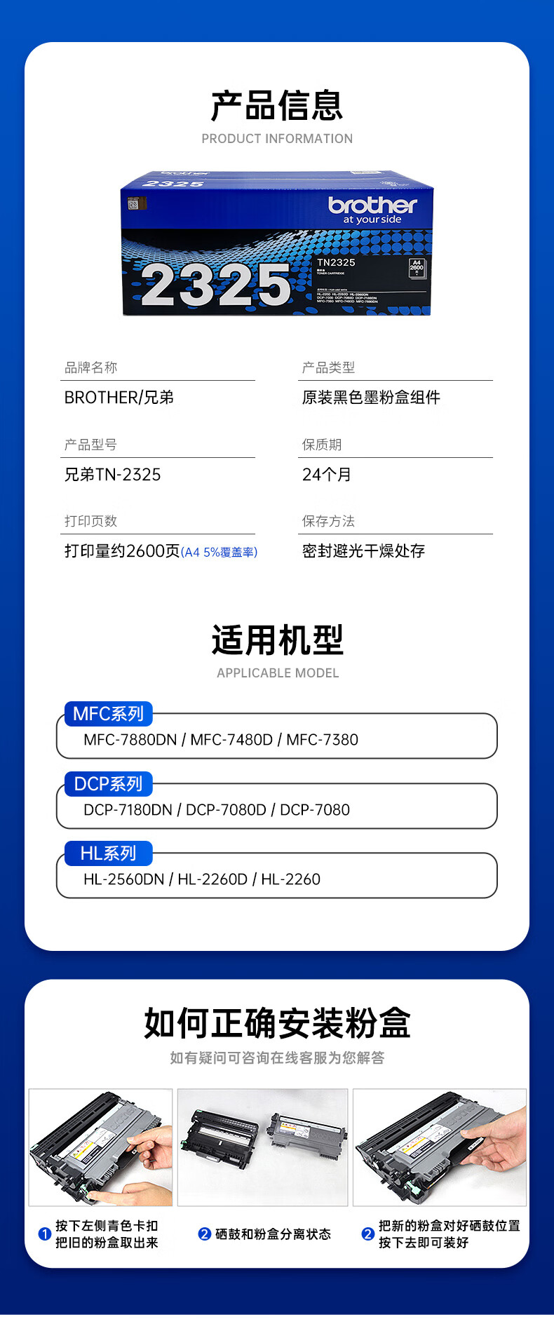 兄弟(BROTHER)原裝兄弟TN-2325 2312墨粉盒7180dn 7080d 7380打印機(jī)粉盒DR-2350硒鼓 DR2350硒鼓架 約12000頁(yè) 不含粉盒