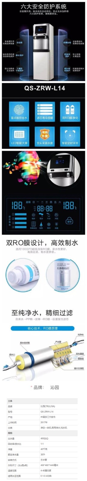 沁園/TRULIVA QS-ZRW-L14 步進(jìn)式電開水器及其配套凈水裝置 450*465*1445 商用直飲機(jī) 反滲透RO膜濾芯