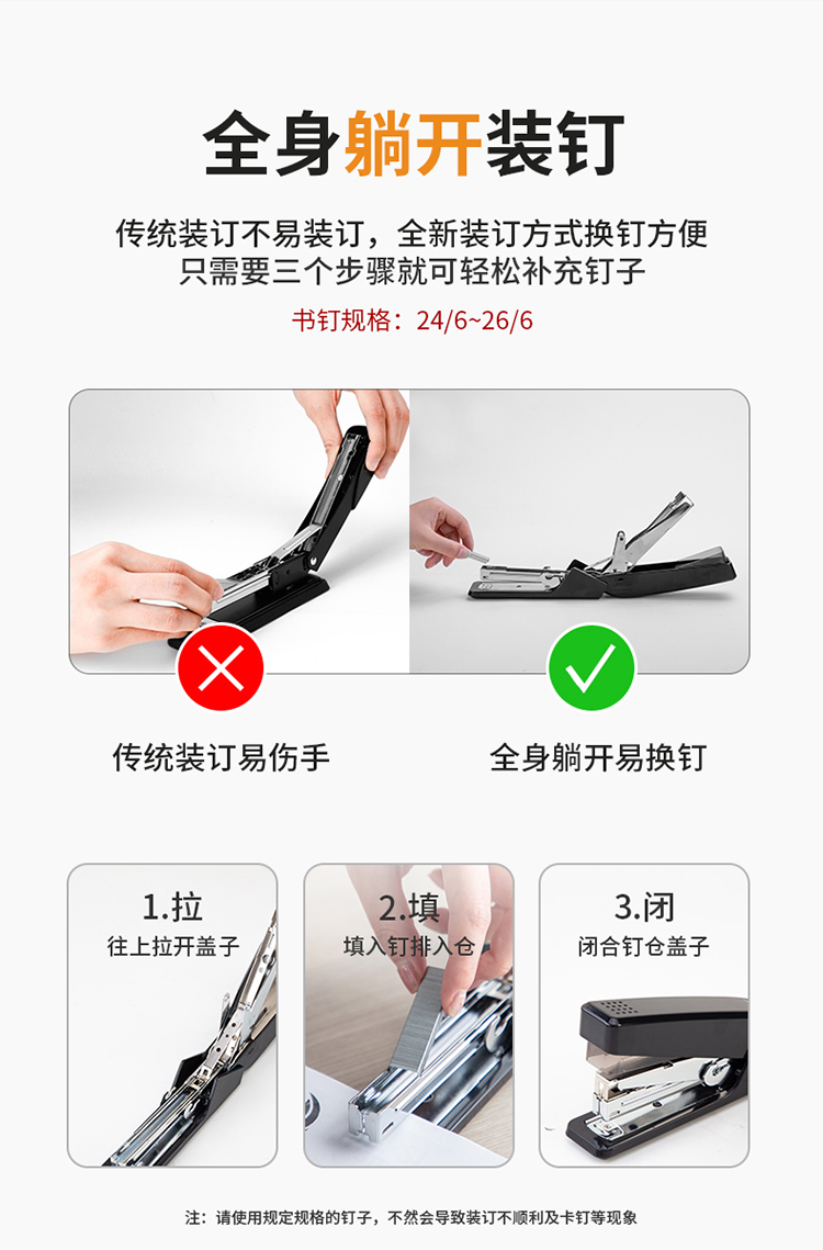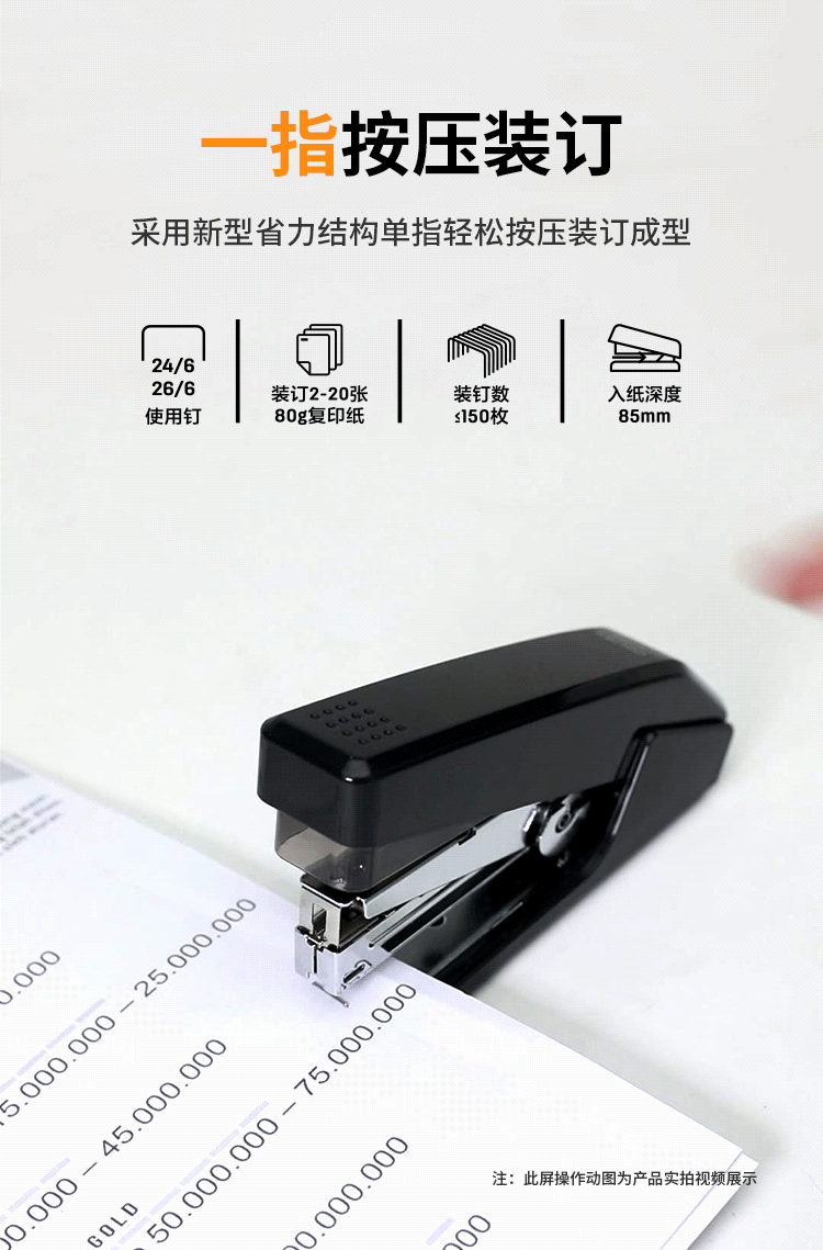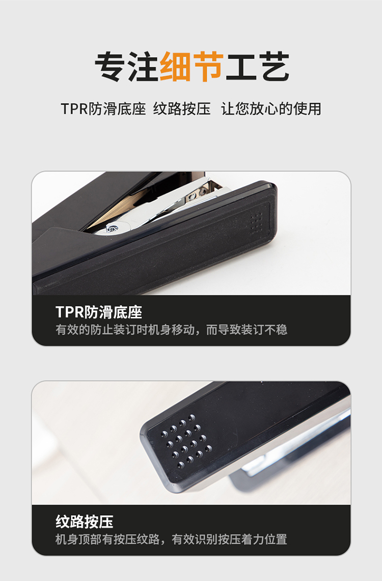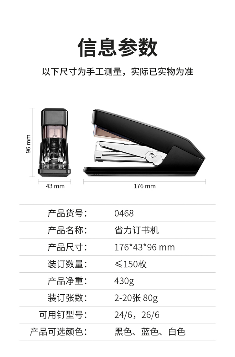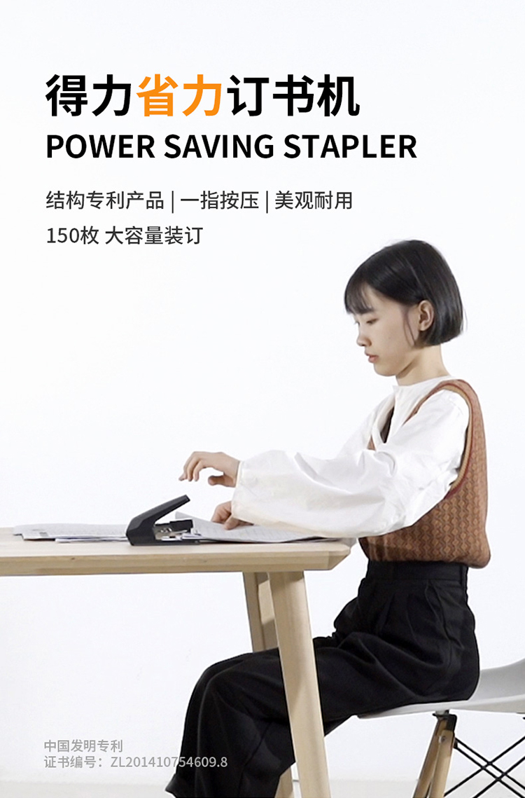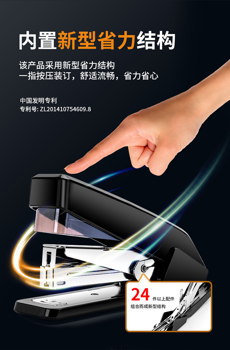 得力/deli 0468 裝訂及打孔類 省力結(jié)構(gòu)專利訂書機(jī)/訂書器 適配12#訂書釘 可裝150枚釘 辦公用品 黑色