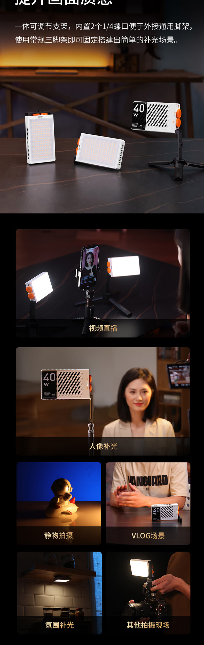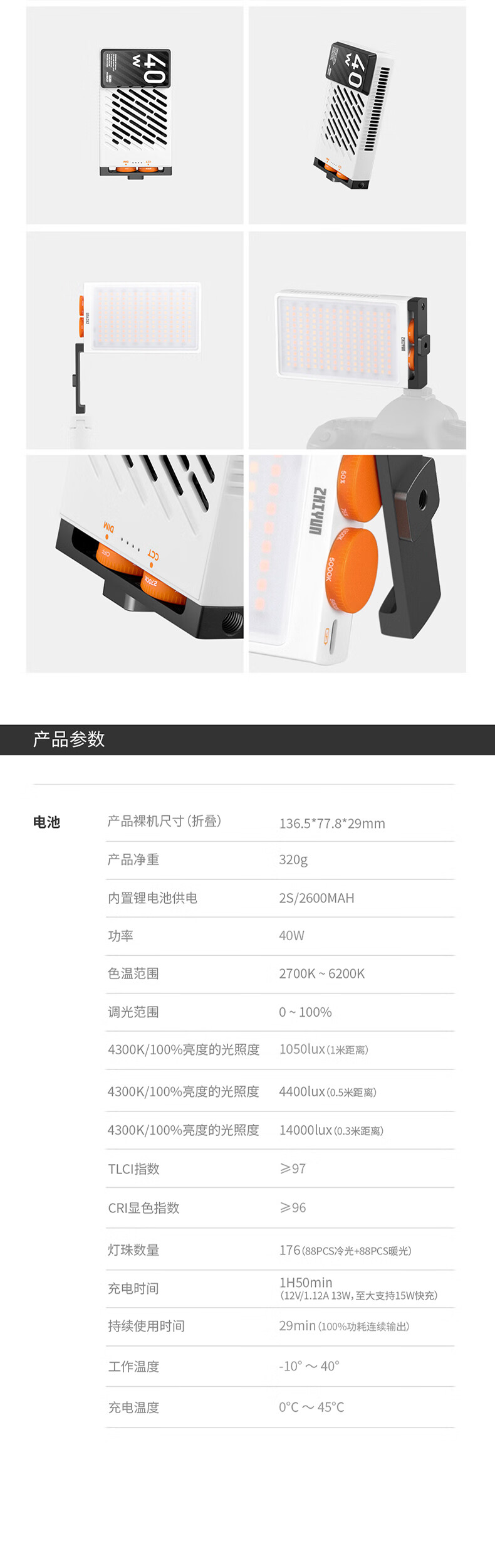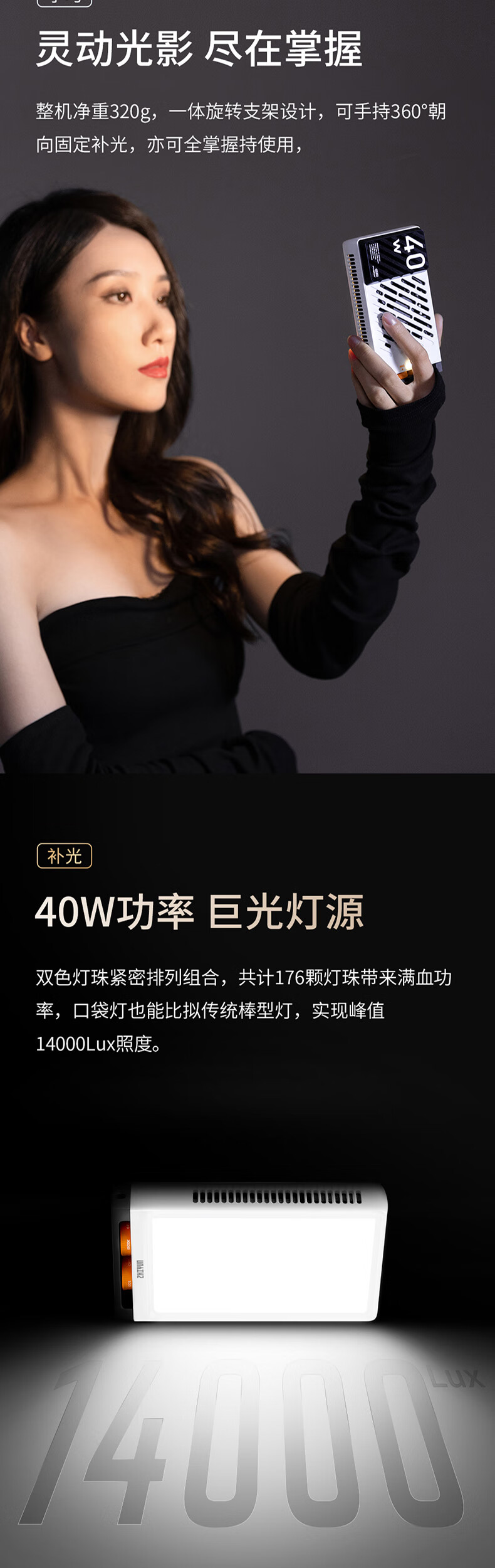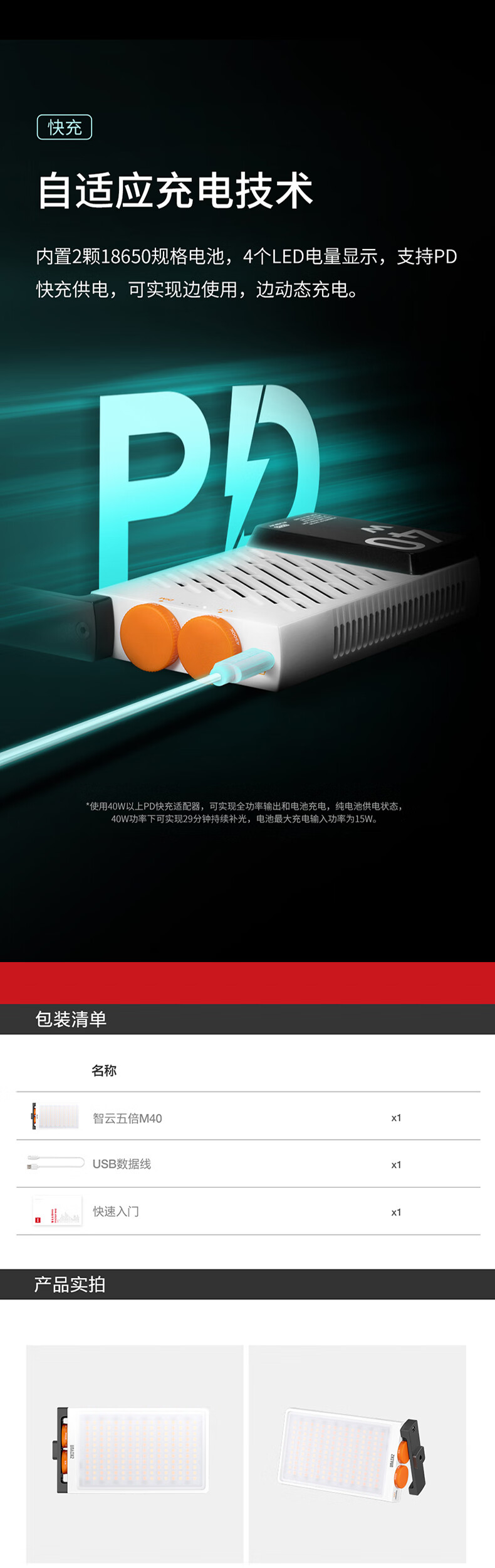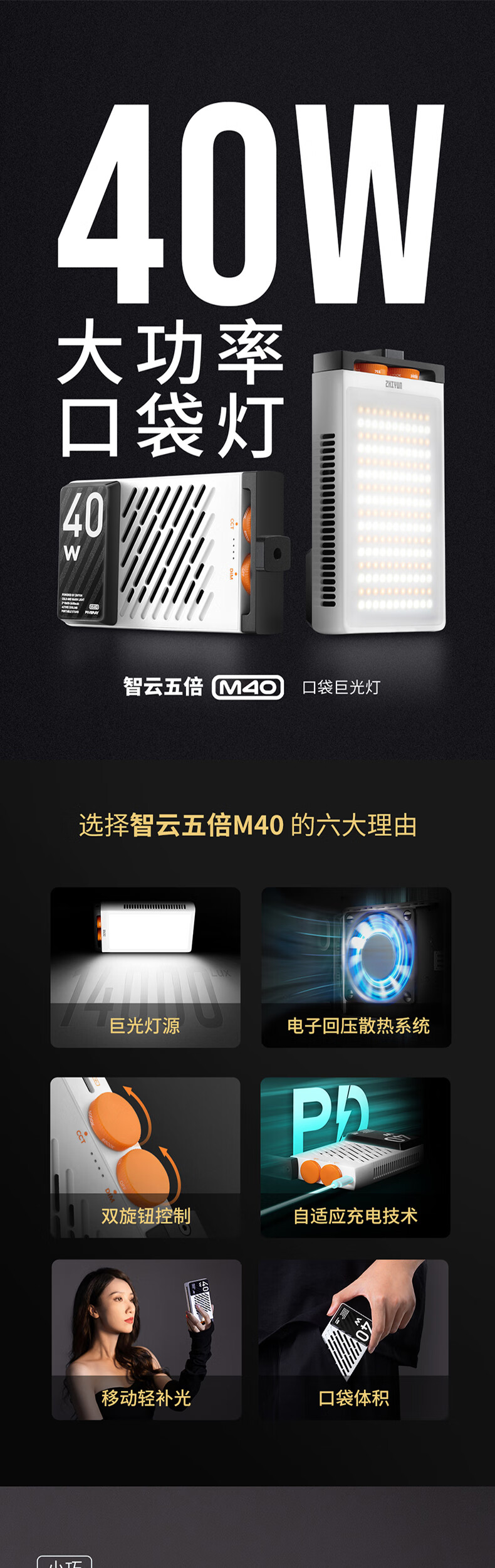 智云/zhiyun M40 補(bǔ)光燈 五倍M40專(zhuān)業(yè)便攜補(bǔ)光燈口袋巨光燈 攝影燈微單相機(jī)手機(jī)室內(nèi)人像特效 40W口袋燈 官方標(biāo)配【送柔光罩】