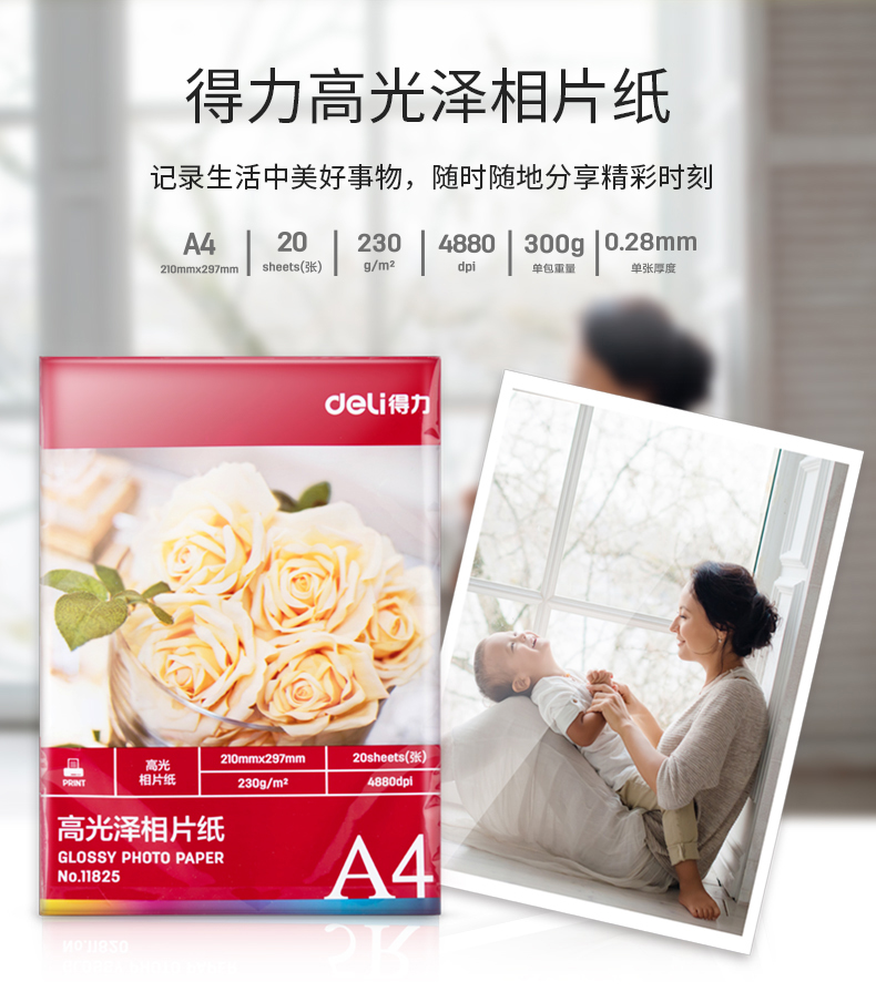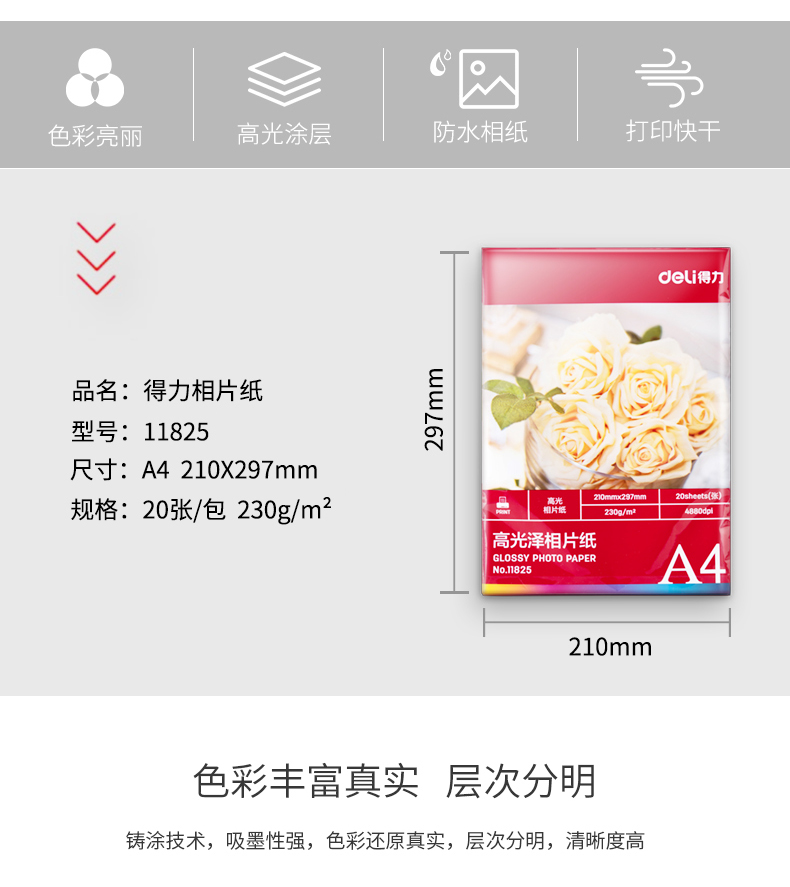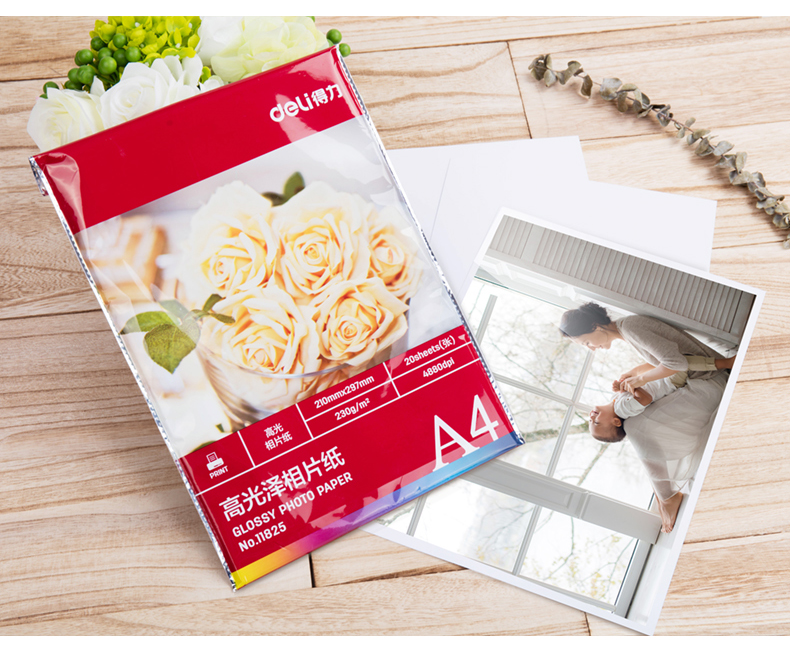 得力(deli) 3541 噴墨/相片紙/卡紙 高光面照片紙 相片打印紙 A4 20張200g