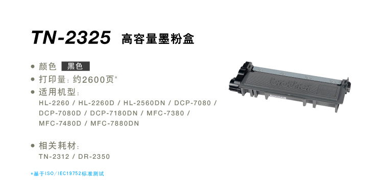 兄弟(brother)TN-2325 原裝粉盒 大容量 適用HL-2260 2560D DCP-7080/7180/7380/7480/7880DN 打印機硒鼓