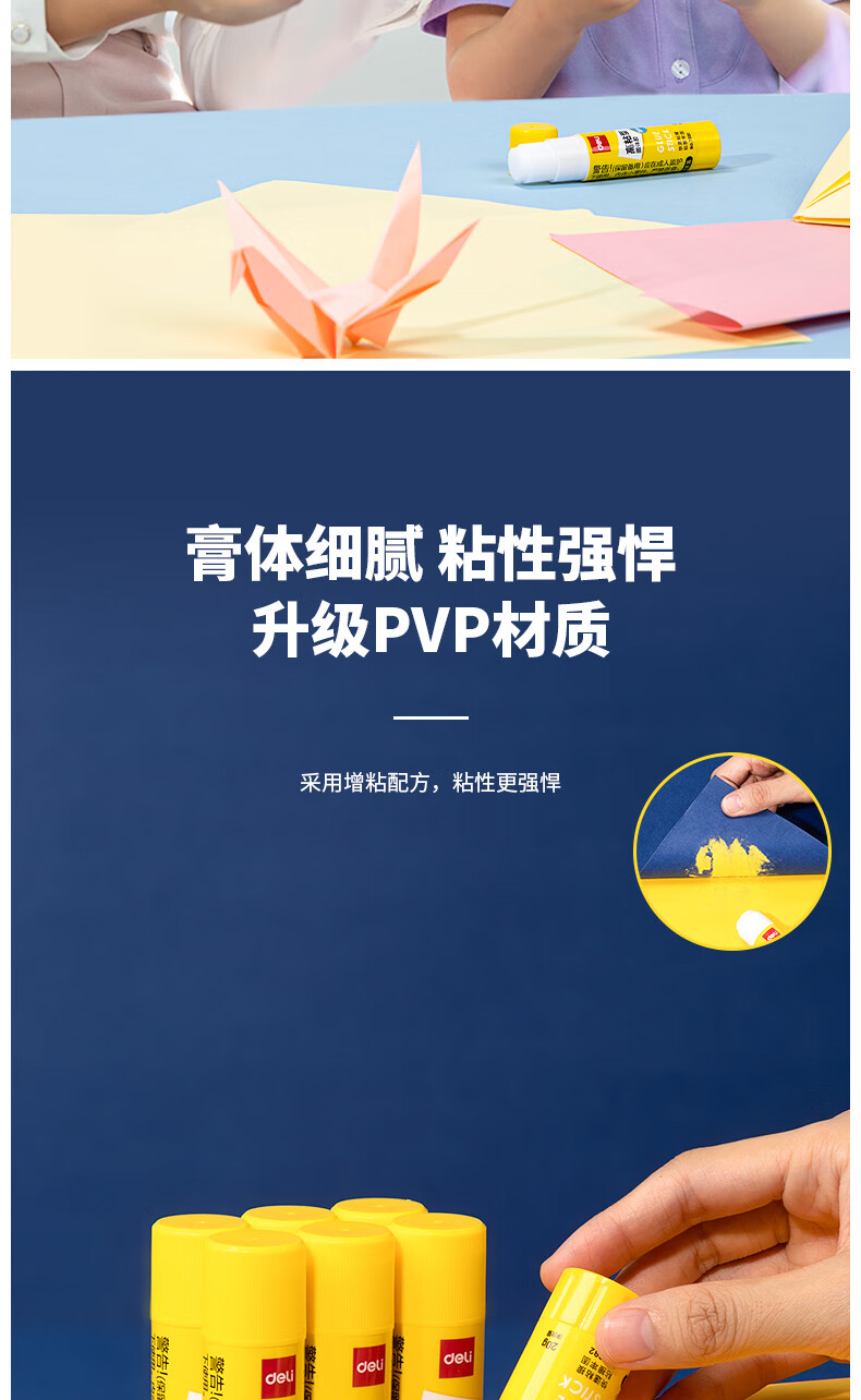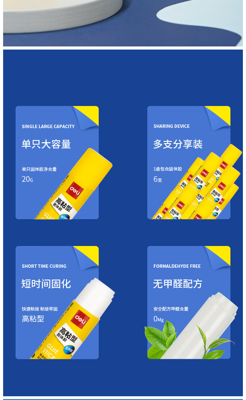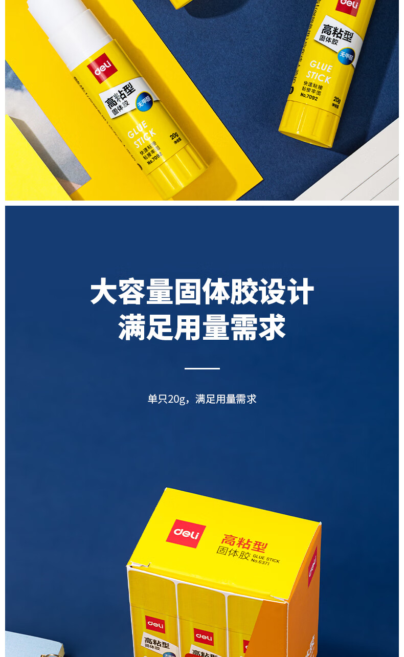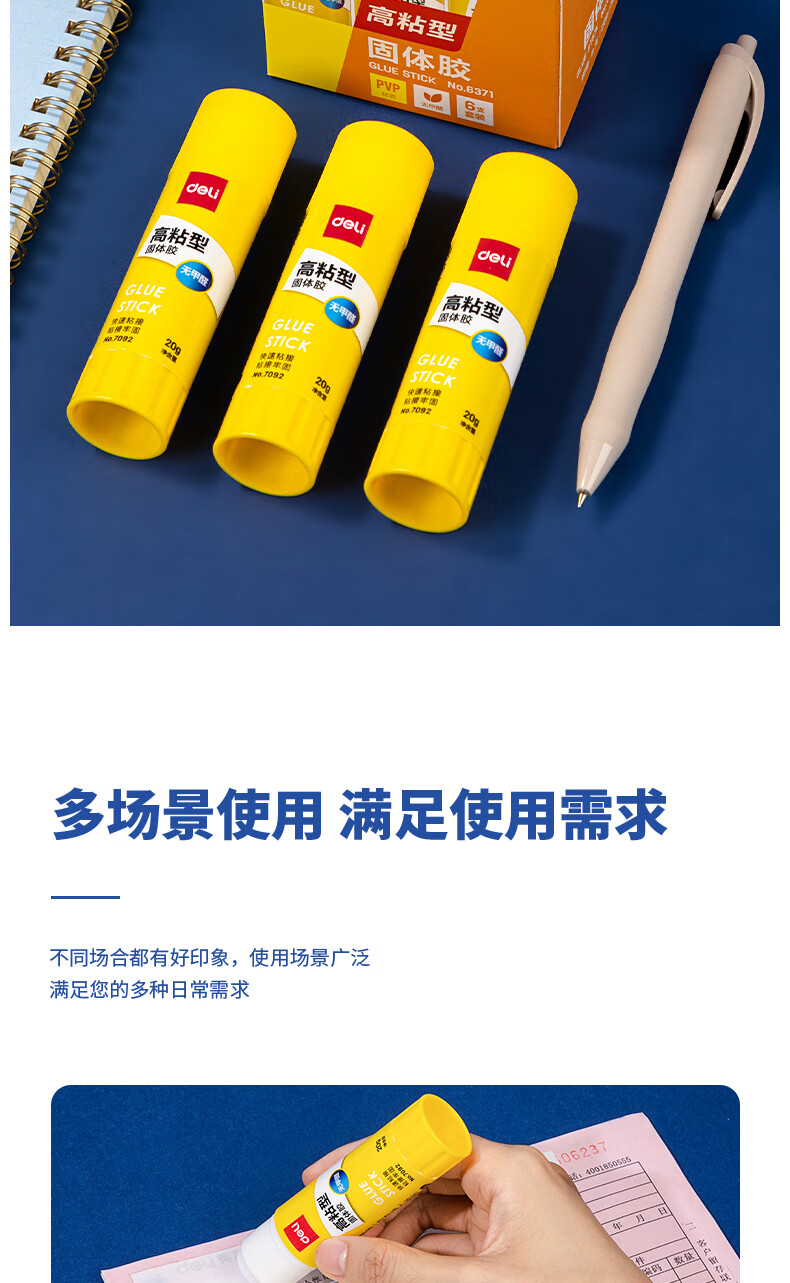 得力 637膠棒/固體膠/膠水 120g高粘度PVP固體膠水 無甲醛快干耐用膠棒 6支裝 辦公用品 6371