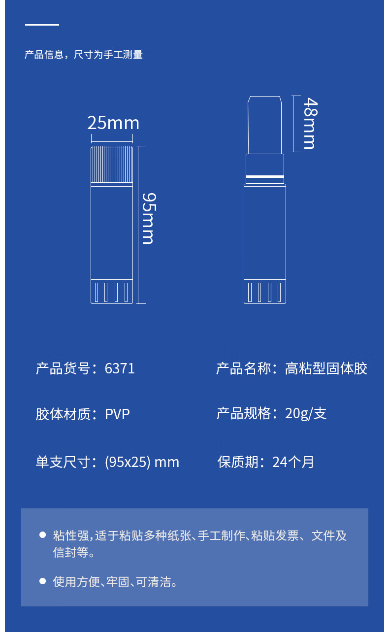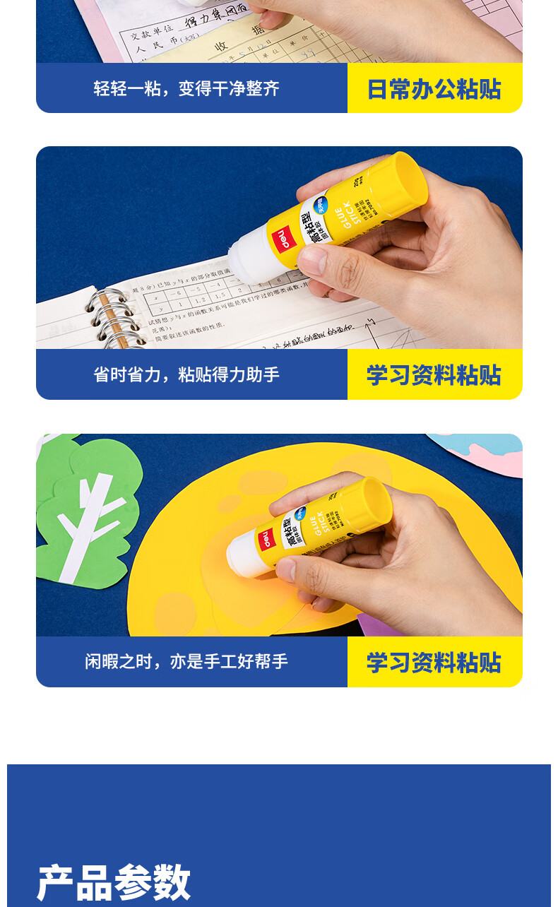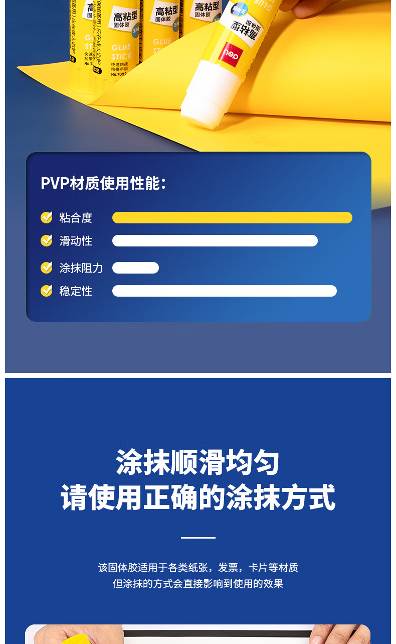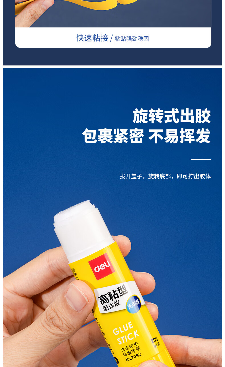 得力 637膠棒/固體膠/膠水 120g高粘度PVP固體膠水 無甲醛快干耐用膠棒 6支裝 辦公用品 6371