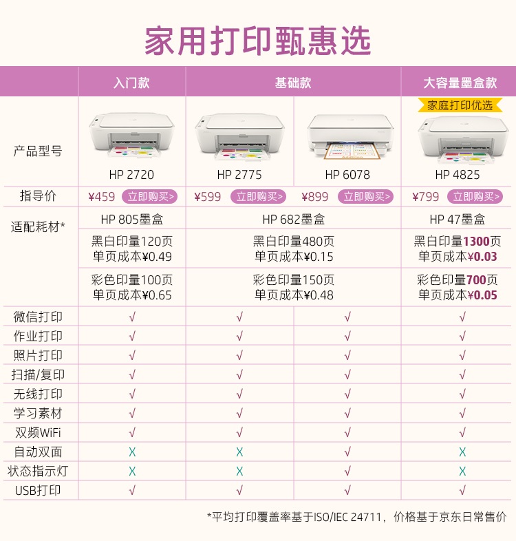 惠普(HP)DJ 4825彩色無線噴墨一體機 大印量低成本學(xué)生打印微信打?。ù蛴?復(fù)印 掃描)2720/2775升級款
