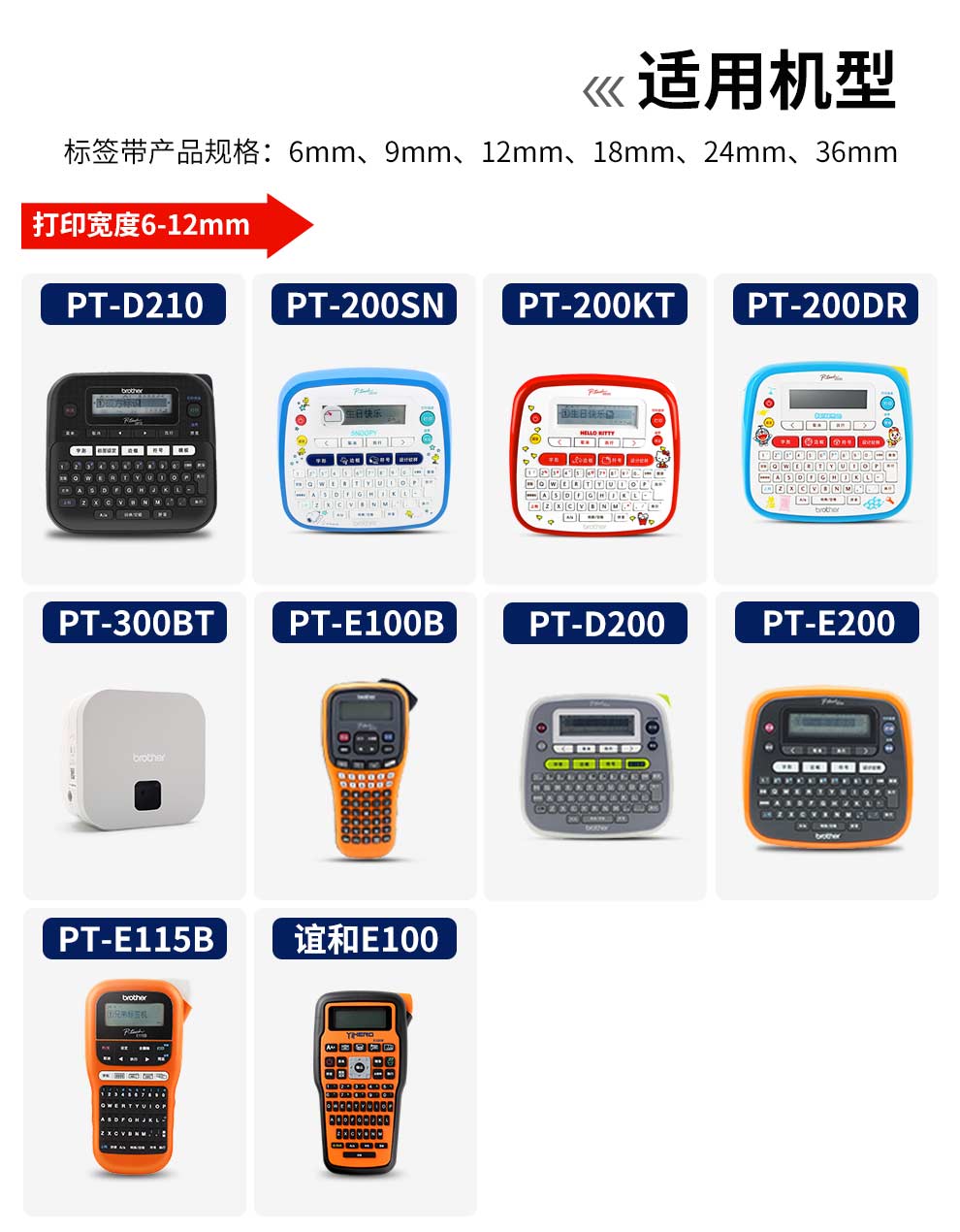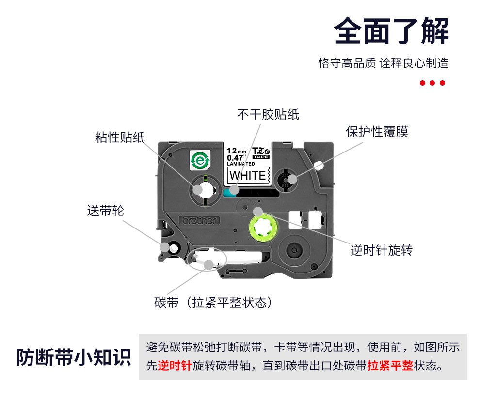 兄弟531 標簽打印紙/條碼紙 標簽機色帶原裝不干膠標簽打印機標簽帶標簽紙 白底黑字 12mm