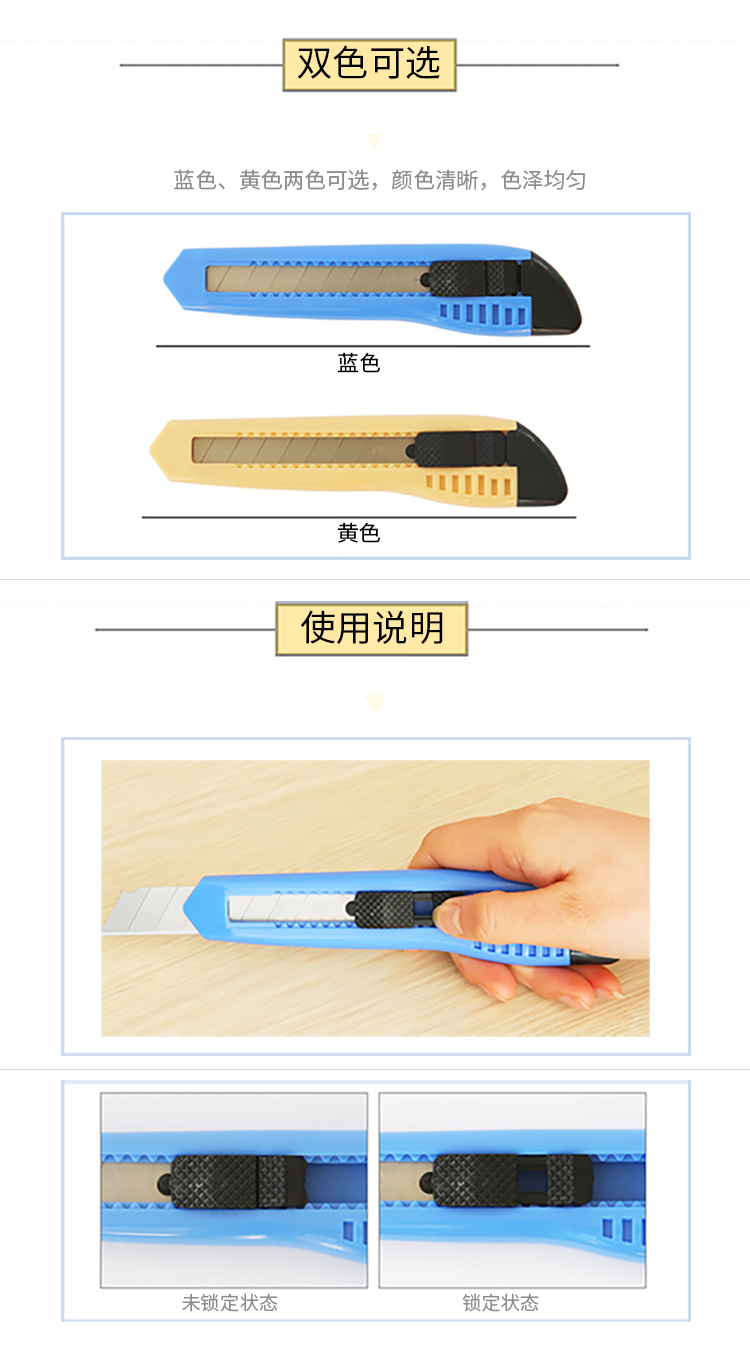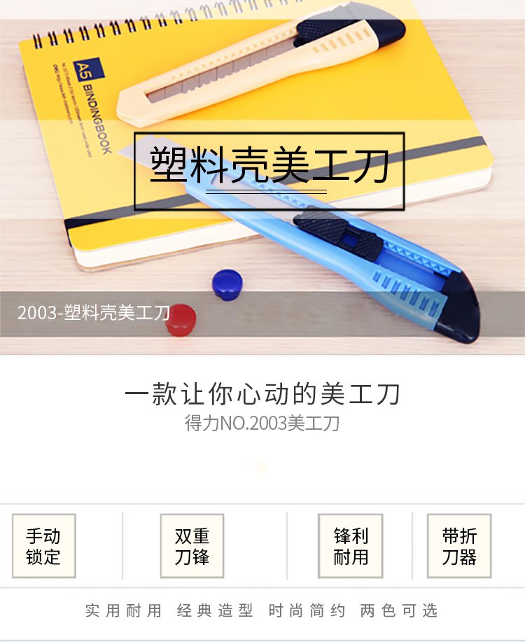 得力2003 裁紙/切紙/拆信刀 大號(hào)通用辦公家具美工刀/裁紙刀 手動(dòng)鎖定 顏色隨機(jī) 辦公用品 2003