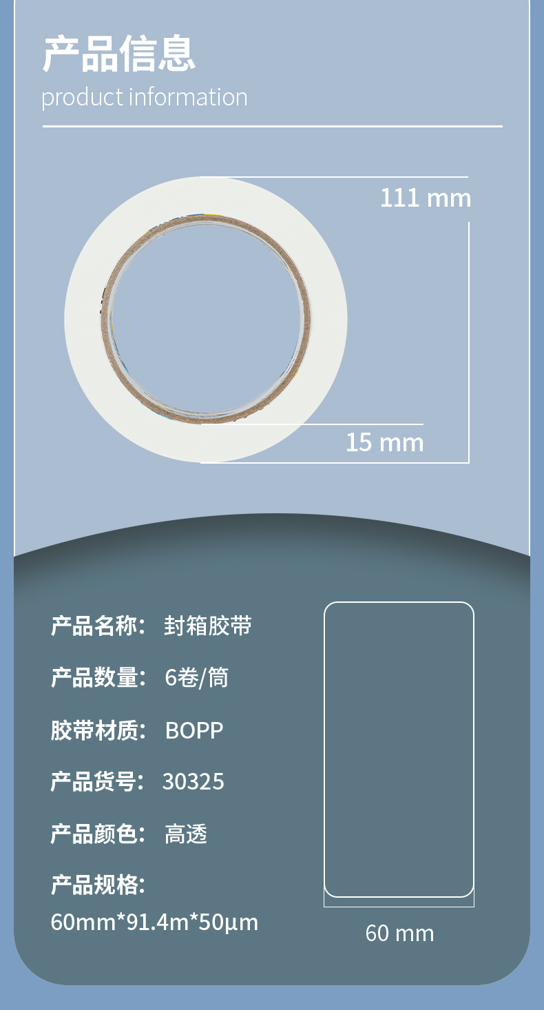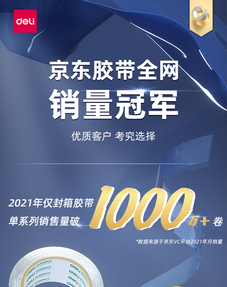 得力30325 膠帶 高品質高透明封箱膠帶倉庫打包膠帶 60mm*100y*50um 91.4m/卷 6卷/筒 辦公用品 30325