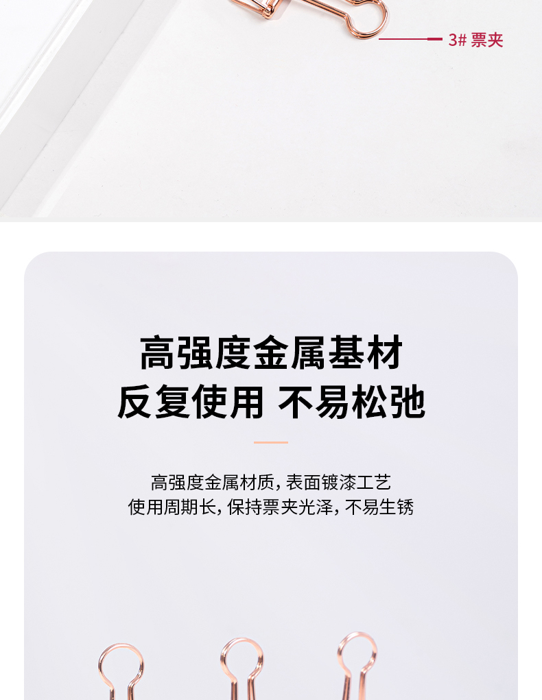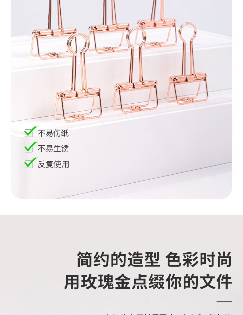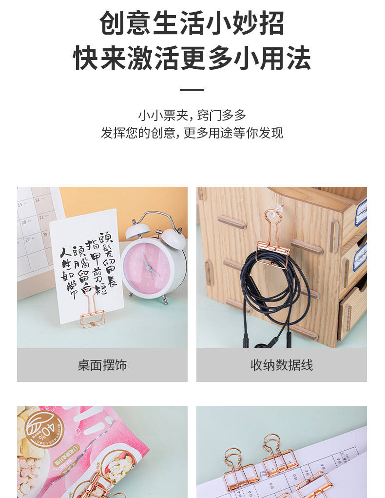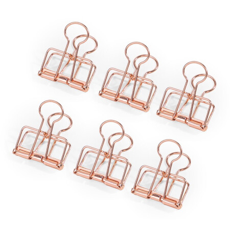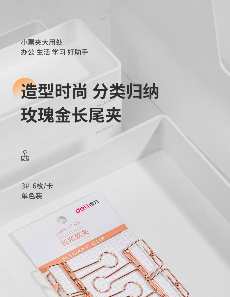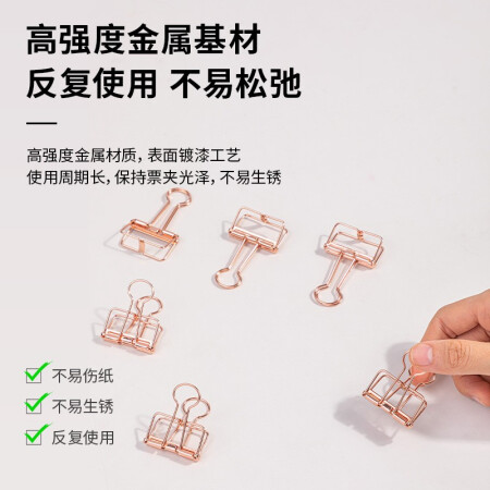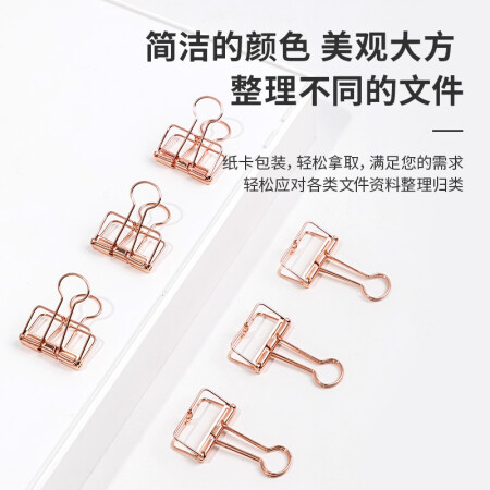 得力 deli 6只32mm玫瑰金鏤空票夾長尾夾 辦公票夾時尚燕尾夾
