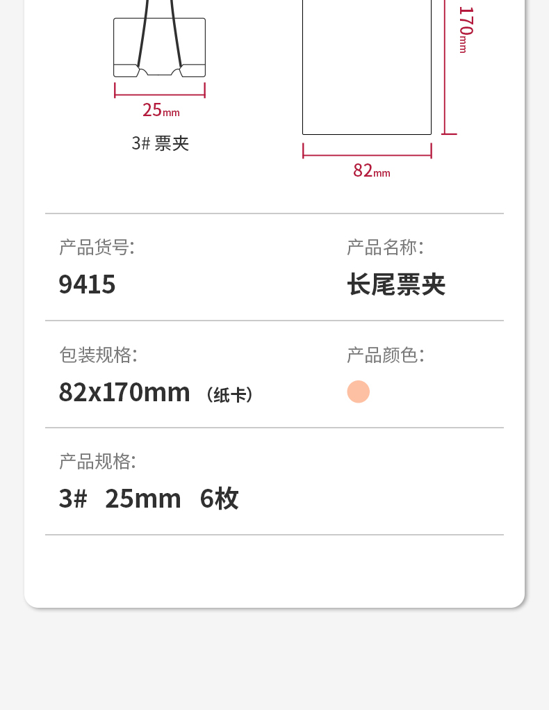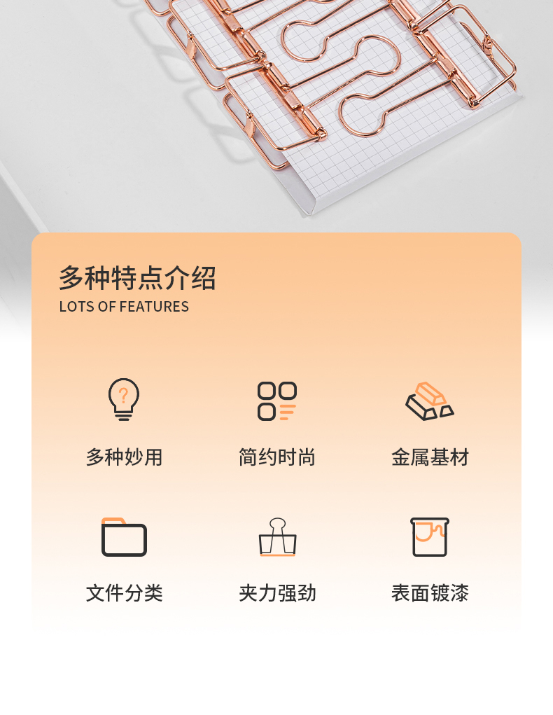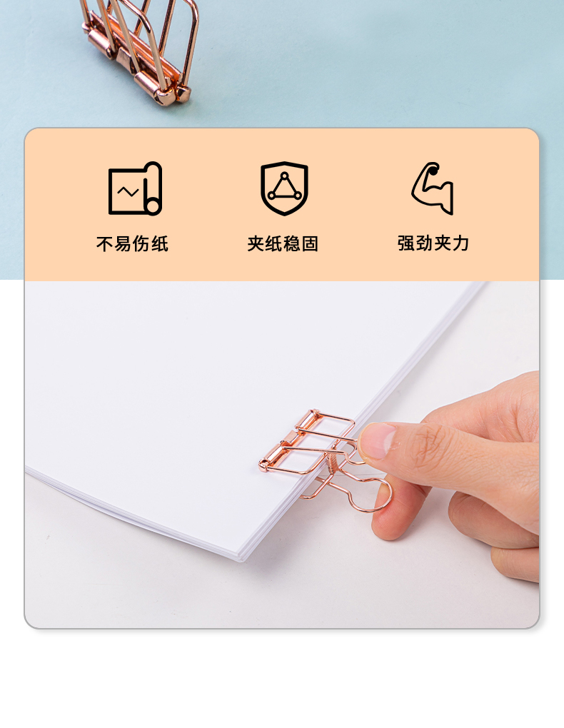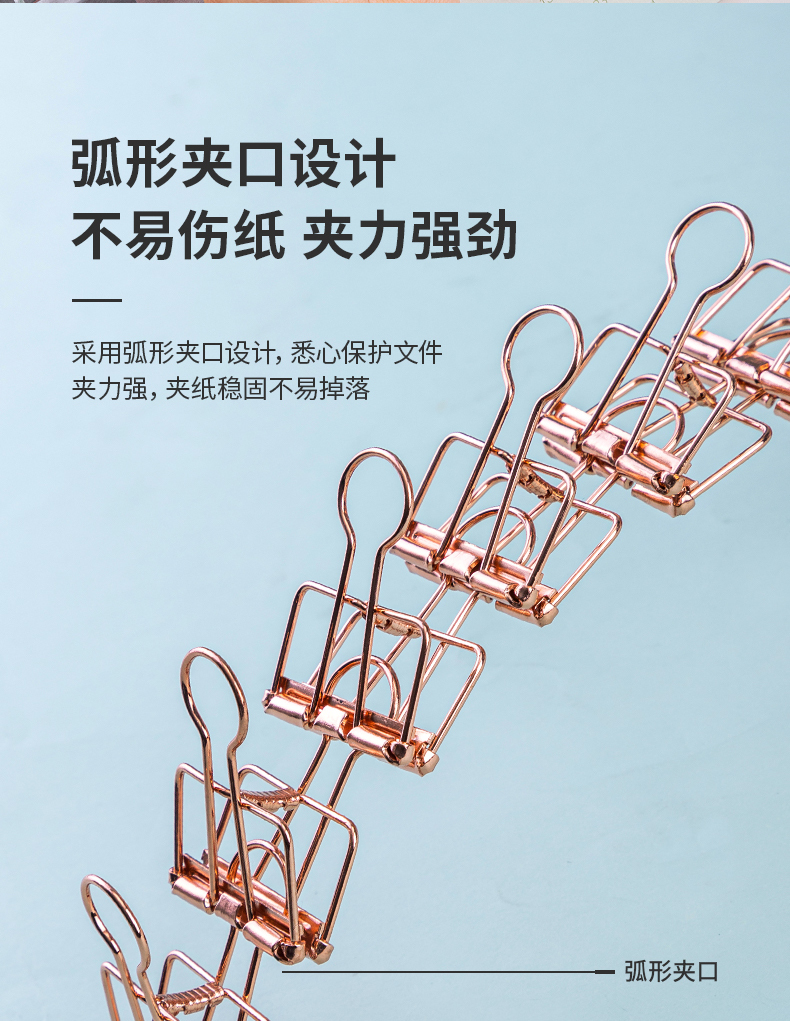 得力 deli 6只32mm玫瑰金鏤空票夾長尾夾 辦公票夾時尚燕尾夾