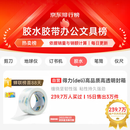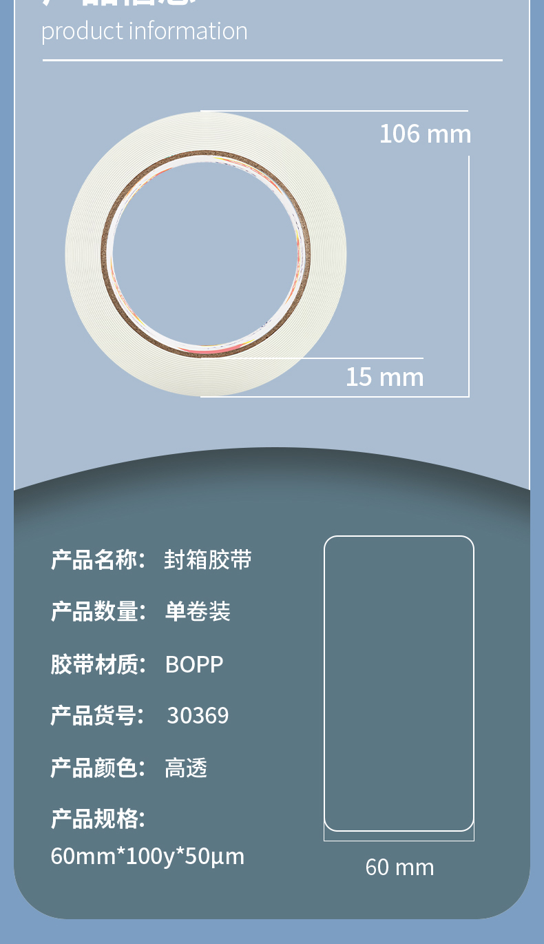 得力 30369 膠帶 高品質(zhì)高透明封箱膠帶/打包膠帶 60mm*100y*50um 91.4m/卷 單卷裝 辦公用品
