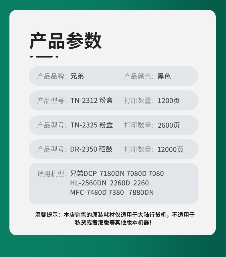兄弟 7480D 粉盒 原裝TN-2325墨粉盒