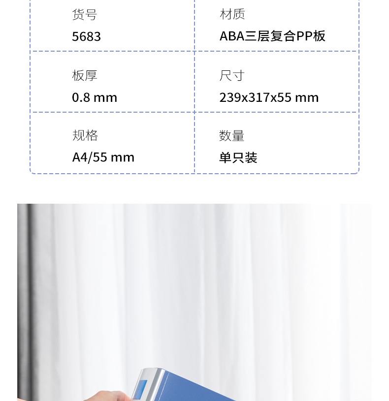 得力5683 檔案盒 1只55mmA4塑料文件盒檔案盒 加厚資料盒 財務憑證考試收納