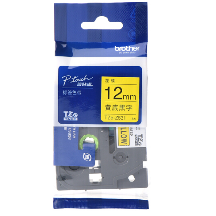 兄弟(brother)TZe-Z631 12mm黃底黑字標(biāo)簽色帶