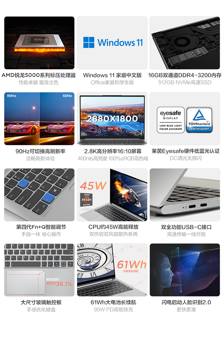 聯(lián)想(Lenovo) 小新Pro14 標(biāo)壓銳龍版 高性能全面屏輕薄筆記本電腦 R5-5600H 16G 512G 2.8K屏